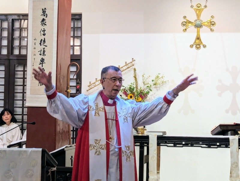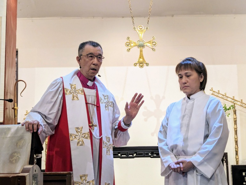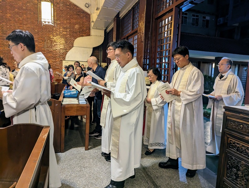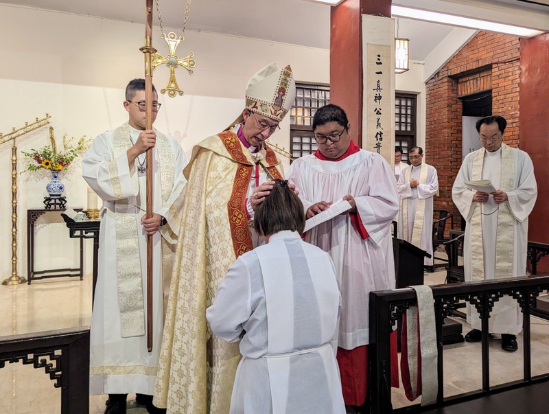Vivian was born in Pingtung, south Taiwan, and grew up there until moving to Taipei for high school and work. After she returned to Pingtung later in life, she got involved in St. Mark’s Church, Pingtung, and it was St. Mark’s Church, then under Rev. Joseph Ho as vicar, who recommended her for theological training. In his sermon at the ordination service, Bishop Chang said that Vivian had spent 7 years working for the Pingtung County Government (2011-2017) helping people to apply for government assistance to face the many problems in their lives. He said that this experience had a profound effect on Vivian, as she came to see that what many of these people were really searching for was spiritual help, and that spiritual help was to be found in Jesus Christ. And so she developed a strong calling and desire to share her faith with others. Through St. Mark’s Church, Pingtung, Vivian then applied to the Diocese of Taiwan as a seminarian with a view to ordination. Bishop Chang emphasized that her sense of vocation and calling was so strong that she was willing to give up her job to pursue this calling further, and it has been with her ever since. In 2018, Vivian started theological training, first at Ming-Hua Theological College in Hong Kong, then at our diocesan Trinity School for Christian Ministry. Now, said Bishop Chang, after 6 years of training, it is time for her ordination as deacon – and the responsibilities of a deacon include helping the poor and needy in the church. Bishop Chang exhorted all the clergy and church members to continue to support and pray for Vivian as she begins her ordained ministry. This was the ordination service….