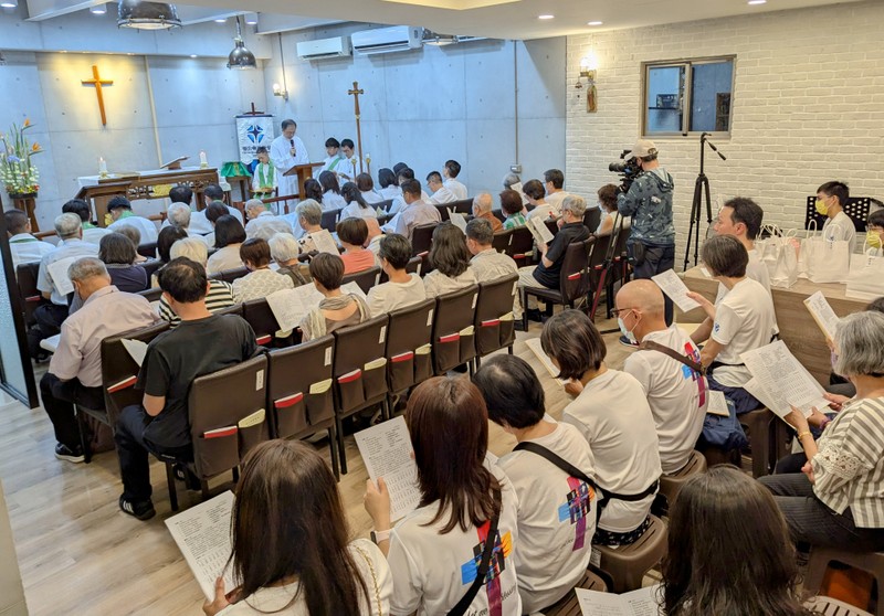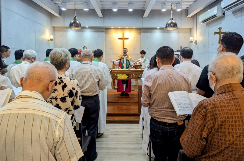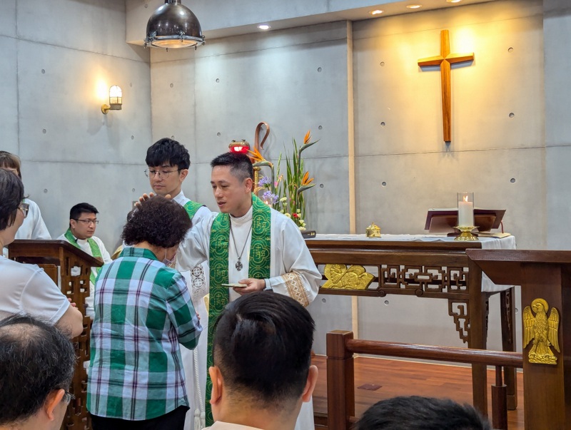 Bishop Lennon Yuan-Rung Chang celebrated and preached at the service. He had only returned a few days previously from attending The Episcopal Church General Convention (June 23-28) in Louisville, Kentucky, USA, and, like many others, had gone down with Covid-19 a few days later. Although recovered, he was being cautious and wore a facemask throughout the service. You will see from the photos below that we were all crammed into the small worship space, with half the congregation watching on the live stream upstairs. One of the highlights was the choir, who sang, ‘I the Lord of Sea and Sky’, which was beautiful!