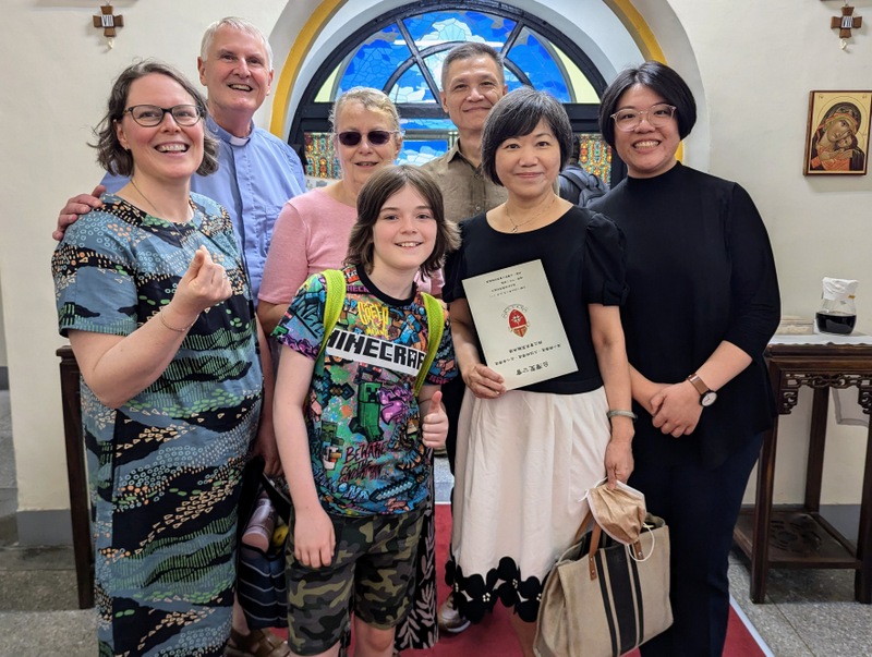 We were also honoured to welcome Rev. Canon Dr LAM Chun Wai 林振偉法政牧師 from HKSKH St. Peter’s Church, North Point, Hong Kong, who is visiting Taiwan with a group from his church – some of them were at the service, along with others, so this is the Hong Kong group photo…