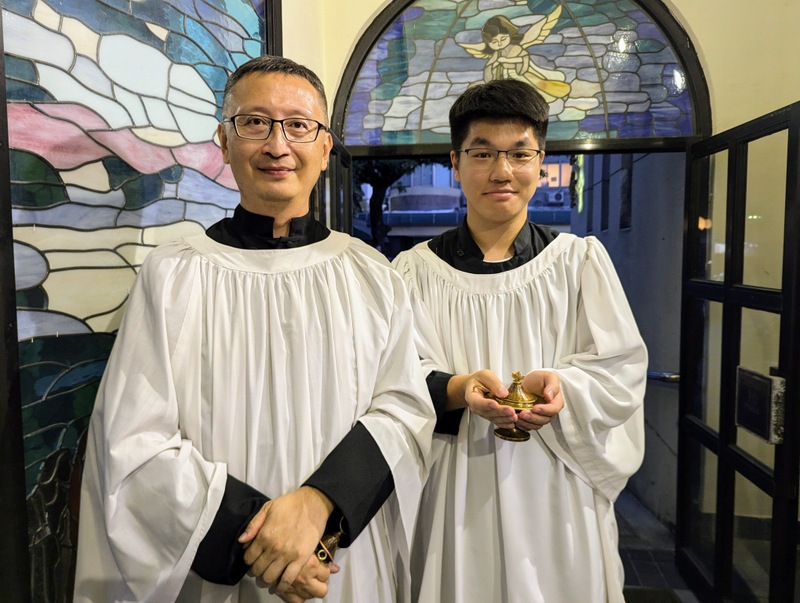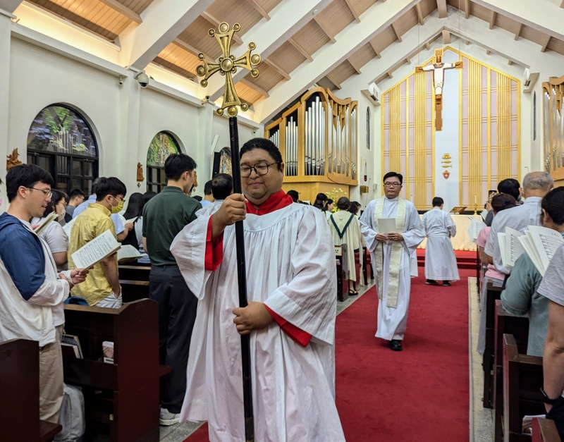 I was born in 1990 and grew up in Taichung, and in 2012, my family and I moved house near to St. James’ Church, where I had spent a year in the kindergarten as a child. We started to worship at St. James’ English service so that I could improve my English. Later I worked as an English teacher and also helped with the St. James’ Youth Group. As I observed, learned, and grew to become an Episcopalian, I found that the beauty in liturgy truly brings peace. My aunt and her family are members of Advent Church, Tamsui and I met the then-rector (now bishop), Rev. Lennon Yuan-Rung Chang, when he presided at my grandfather’s funeral. Later he invited me to join a 10-day mission trip to Myanmar. During the trip, we served at a Chinese church, visited elders and the sick, and had activities for children and teenagers, and it was there that I started to seriously consider whether God was calling me to serve him as a priest. Eventually, with the encouragement and support of Rev. Lily Chang, St. James’ Church, and my family, I applied to the diocese and started a year’s internship. In 2019, just a month before my internship, I joined a second mission trip, this time to the Diocese of West Malaysia, invited by Archbishop Ng Moon Hing and led by then Bishop-elect Rev. Lennon Chang.”
