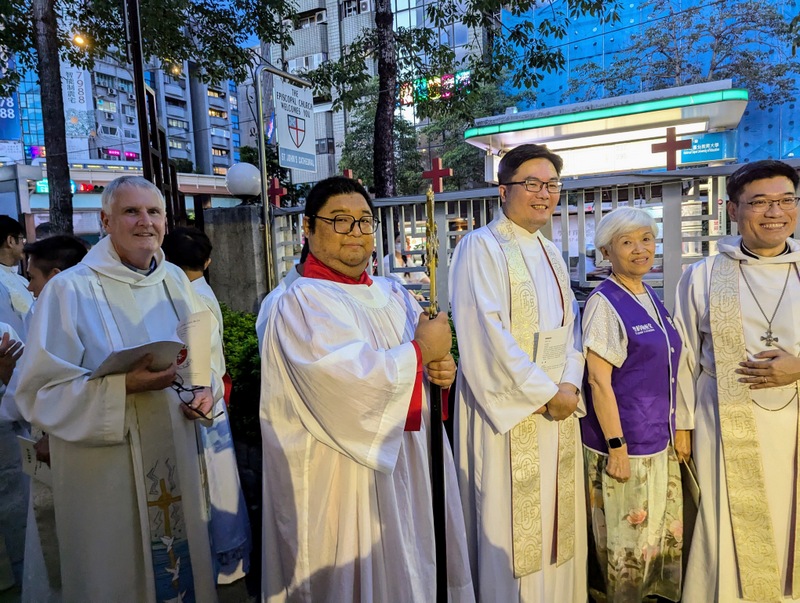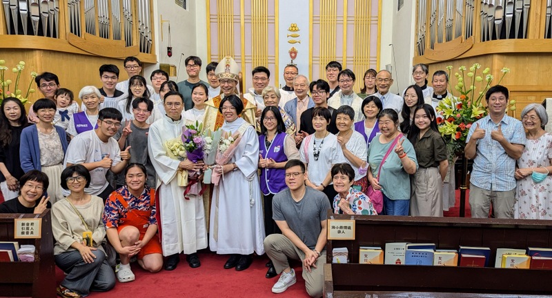 Claire’s internship was at St. Peters’ Church, Chiayi and then at Good Shepherd Church, Taipei; she then moved on to being a seminarian, but her year of theological study at Ming-Hua Theological College, Hong Kong was interrupted by the pandemic, and like many students, she had to study largely online. Through scholarships provided by the US Episcopal Church, Claire moved to Virginia Theological Seminary in the USA and graduated with an MDiv this past summer. In his sermon, Bishop Chang encouraged her not to worry about her relatively young age and to not be afraid! A large group came from St. James’ Church, Taichung to support her and her family, and also Alex, as he was first recommended for ordination training by St. James. After her ordination, Claire will start her curacy at St. John’s Cathedral, Taipei on August 1.