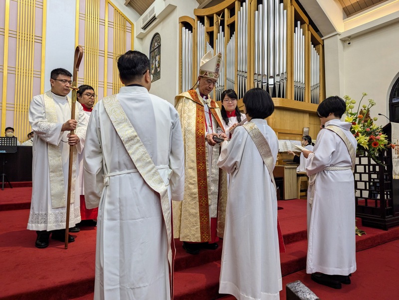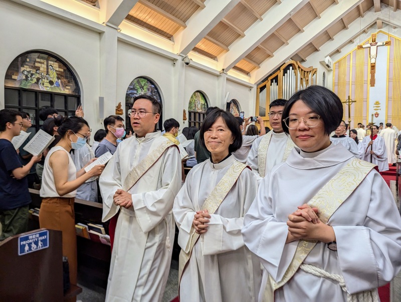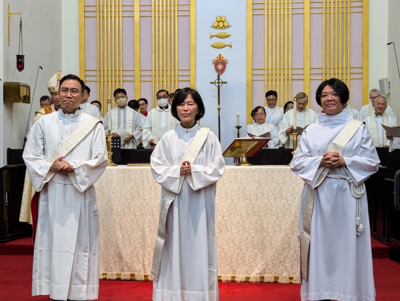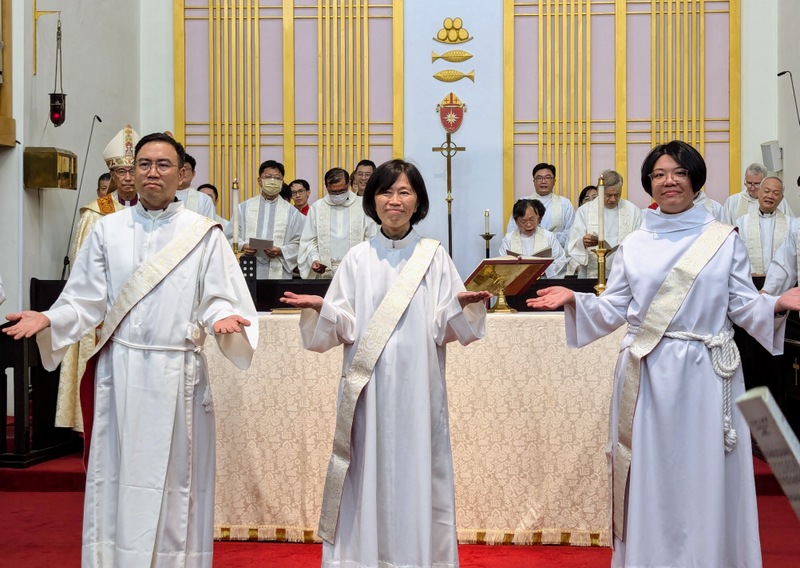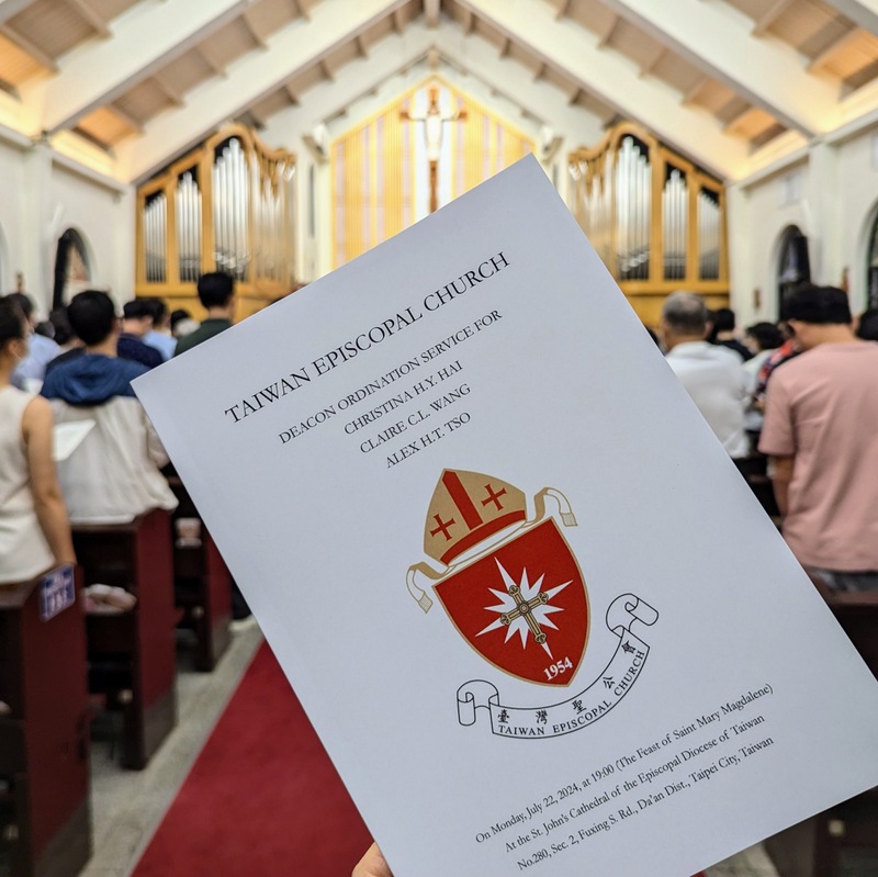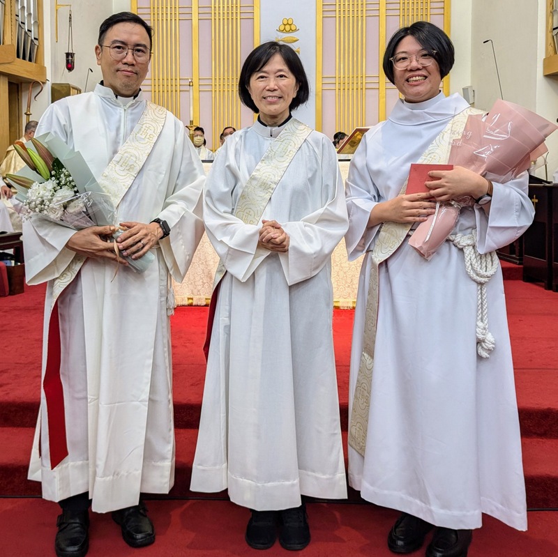 Congratulations to Rev. Christina Hsiao-Yen Hai 海小燕 (above centre), Rev. Claire Chia-Lin Wang 王佳琳 (above right) and Rev. Alex Hsin-Tai Tso 左心泰 (above left), all ordained deacon by the Rt. Rev. Lennon Yuan-Rung Chang, Bishop of Taiwan, at St. John’s Cathedral, Taipei on Monday, July 22, 2024 (Feast of St. Mary Magdalene). Thanks be to Almighty God!