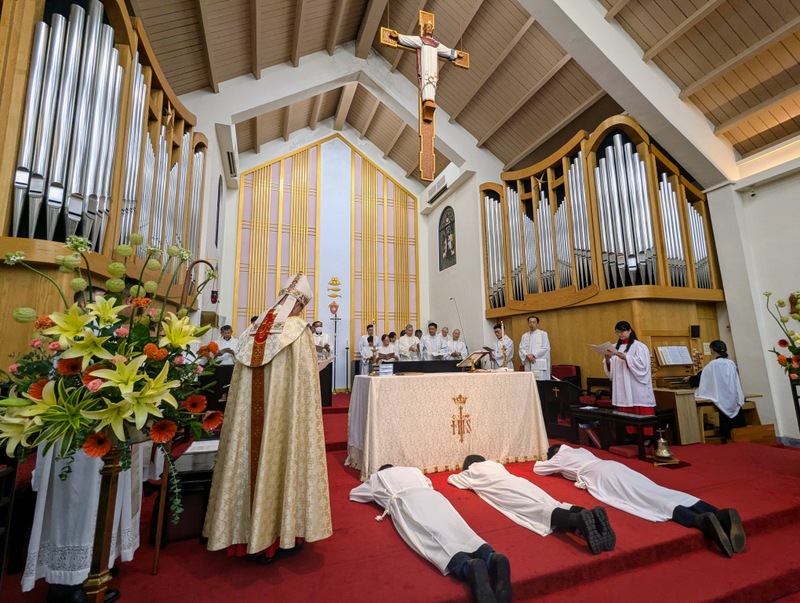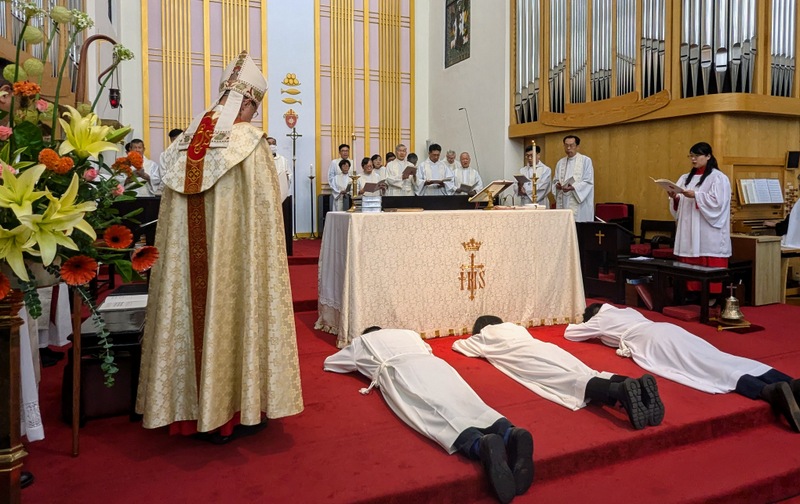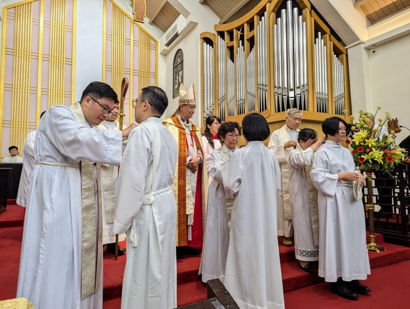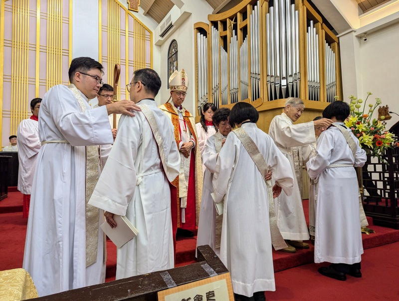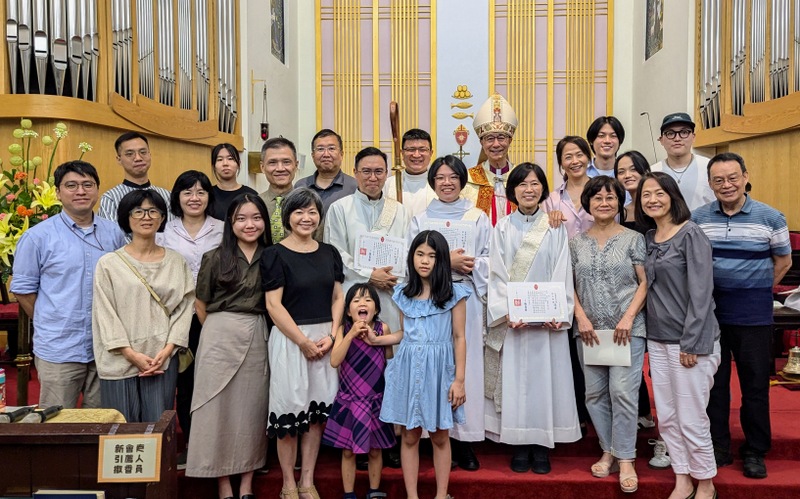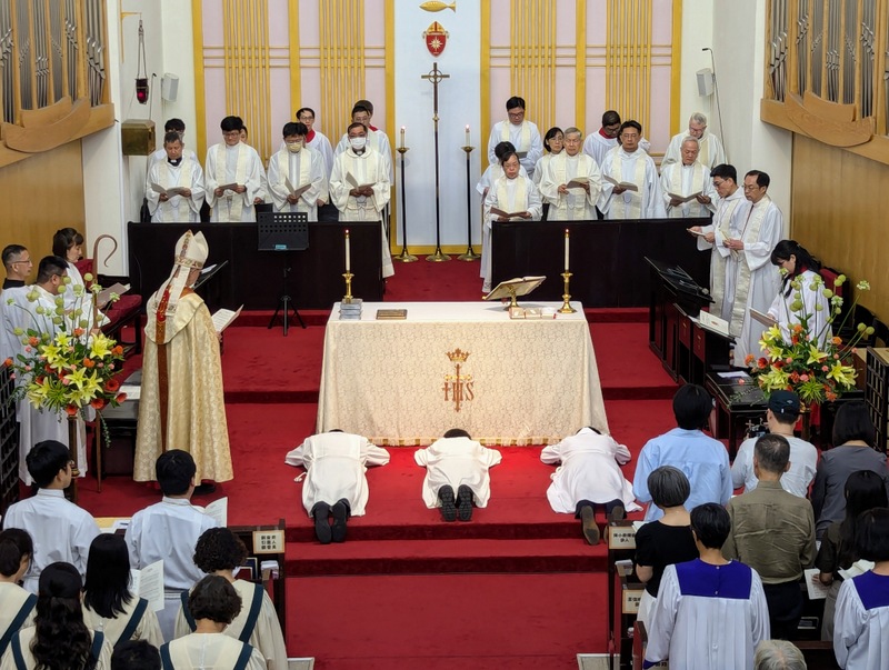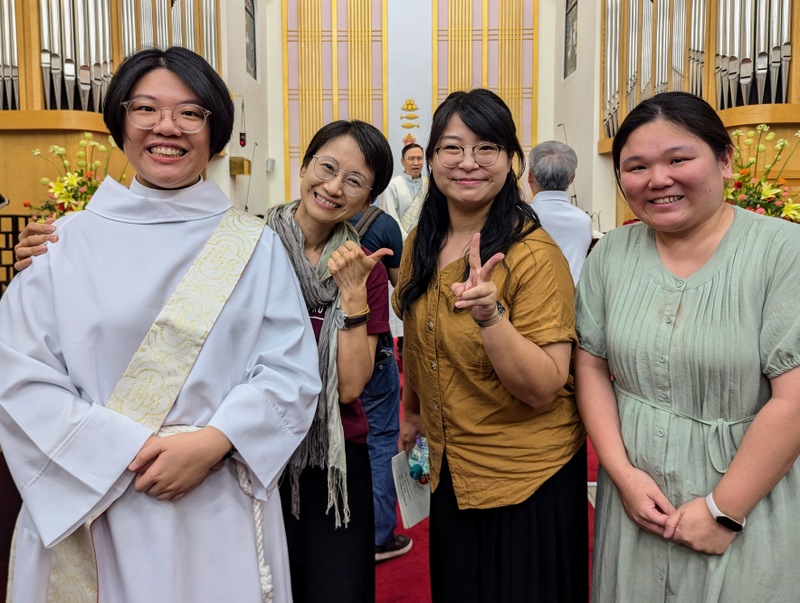 Congratulations to Rev. Christina Hsiao-Yen Hai 海小燕 (above centre), Rev. Claire Chia-Lin Wang 王佳琳 (above right) and Rev. Alex Hsin-Tai Tso 左心泰 (above left), all ordained deacon by the Rt. Rev. Lennon Yuan-Rung Chang, Bishop of Taiwan, at St. John’s Cathedral, Taipei on Monday, July 22, 2024 (Feast of St. Mary Magdalene). Thanks be to Almighty God!