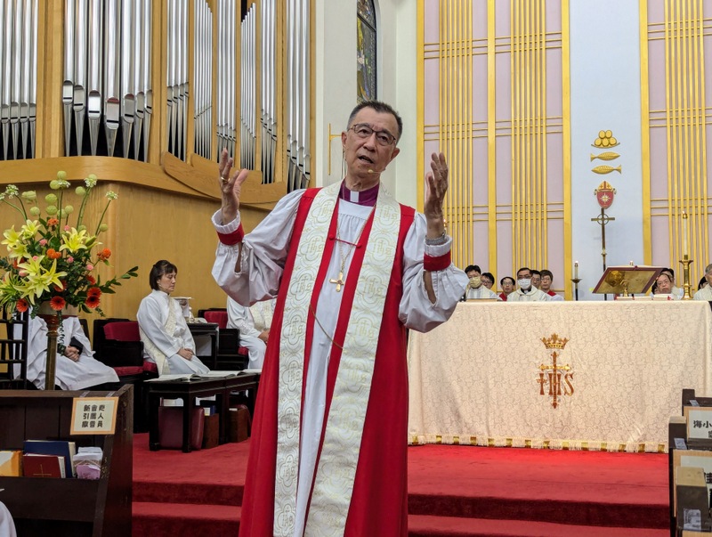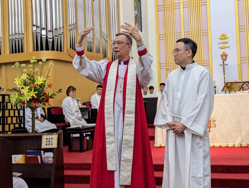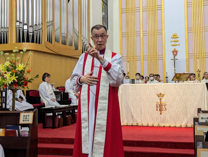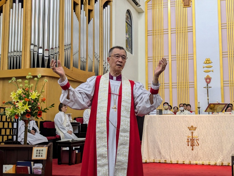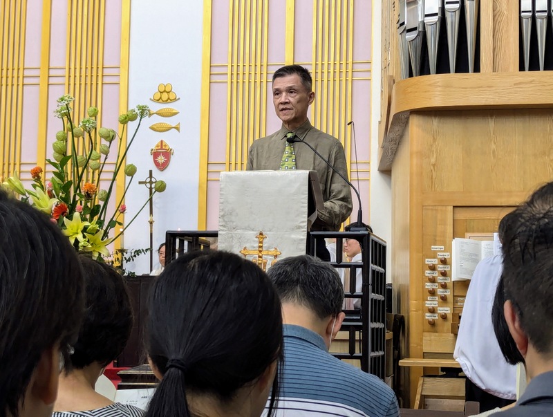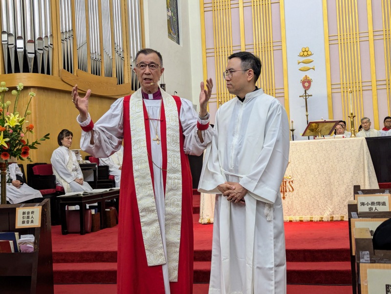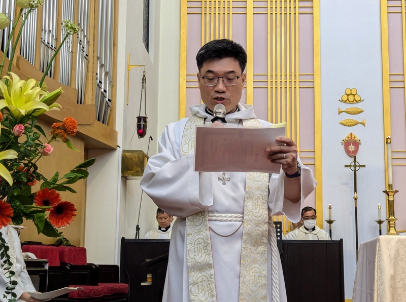 Finally, Bishop Chang introduced Alex Hsin-Tai Tso 左心泰, who is the General Secretary of the Campus Evangelical Fellowship 校園福音團契 in Taiwan, and talked about his calling and commitment to work with students. Alex was supported by a large group of over 40 of his friends and colleagues at the ordination service. He introduces himself as follows: “I was born in 1975 and raised in Taipei. My father worked for the army while my mother took care of me and my two brothers. My family did not have any religious affiliation. In December 1989, my family sent me to Canada to study. Shortly after I moved to Vancouver, a Christian reached out to me and introduced me to a Chinese church. I was baptized a year later, and after about two years, I felt God calling me into full-time ministry. I spent the next 13 years in the same church, where I was discipled and learned to work with other peers. After I completed my bachelor’s studies at Simon Fraser University, I applied for Regent College and completed a Master of Christian Studies in Marketplace Ministry in 2003. Right after my graduation, I returned to Taiwan to work in secular jobs. First, I taught English in Yilan. Then I moved to Taipei and worked with a company for 18 months. In mid-2005, I returned to the field of full-time ministry and became a staff member for Campus Evangelical Fellowship. I moved to the Episcopal Church in 2017 when my family was transferred to Taichung to work with students there, and I joined St. James’ Church. I was drawn by liturgical worship. The inclusivity of the Episcopalians appealed to me, probably because students are more likely to be more progressive. Another reason why I was attracted by the Episcopal Church is that I studied in Regent College for my master’s degree, which has a close relationship with the Anglican Church, and even provides a special program for Anglican study.