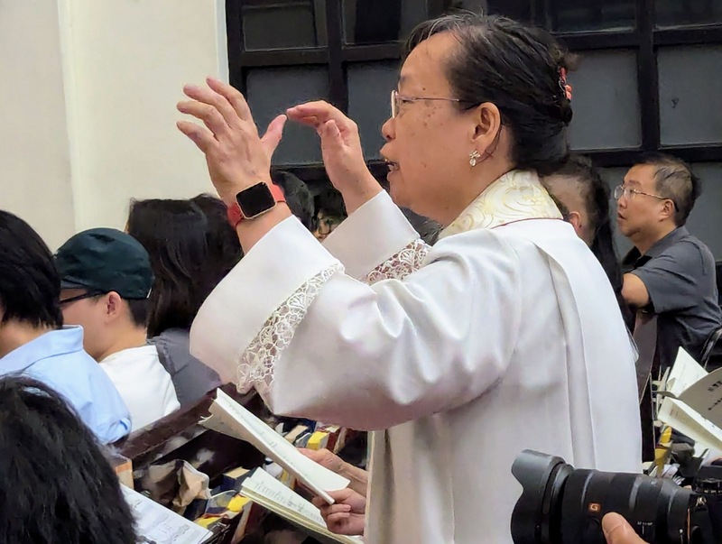 Then Bishop Chang introduced Claire Chia-Lin Wang 王佳琳, who writes, “Dating back to the 1870s, my great-great-grandfather was born into a family of Chinese folk beliefs. He grew to be a businessman and also a spirit medium. One day, his brother-in-law invited him to a sermon, delivered by a student of Dr. George L. Mackay. As a result, he decided to bring his entire family to church and they became Christians. He started sharing his Christian faith with people he knew and even devoted himself to church construction. He said, “I have finally found the true God. In Jesus Christ, people can always live in true peace.” So, I am a fifth-generation Christian. Our family story shows the blessings of God. And because of my great-great-grandfather, I have always been eager to know how God changes lives and realize that the action of love from heaven could truly inspire people.