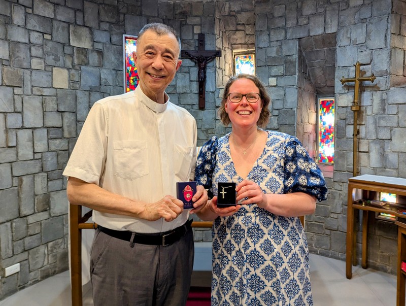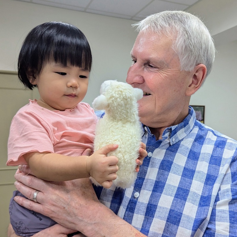 On Thursday however, the typhoon was still here, schools and work were closed for a second day, trains were still cancelled, and it was still raining – but mostly here it was just light rain and it was good to get out and about. Bishop Chang and his family kindly came to the rescue once again and invited us all round to the diocesan office, where we enjoyed a wonderful time sharing together – their granddaughter and Robert got on so well together! And Katherine presented Hannah with a beautiful piece of her own handmade jewelry of the Tree of Life!