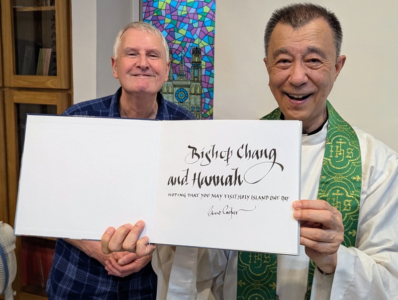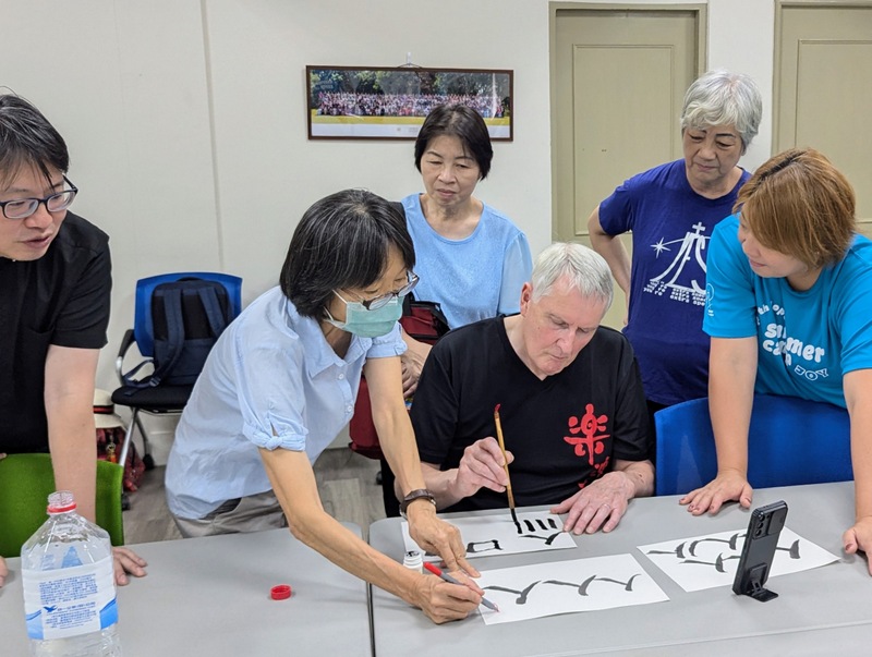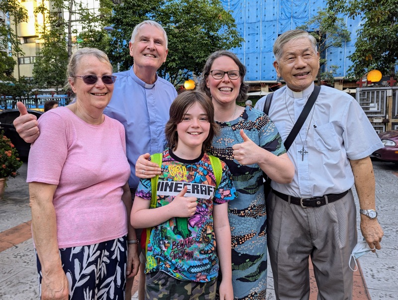 In all my years working with the Church Mission Society (CMS) and being supported by so many wonderful link churches in the UK, it is rare indeed that any of the link church vicars have the chance to actually come and see for themselves what’s going on in Taiwan ~ but it’s just happened, whoopee! The Rev. Robert Cooper and his family were just here, and we had such a great time together! I’ve known Robert since the mid-1980’s, before I joined CMS, when he was Arts Chaplain for the Diocese of Durham, and I was part of St. Michael’s Church, Heighington; I remember he took our church group for a weekend in the North York Moors and we designed and made a huge Celtic Cross together. He was also vicar of St. Andrew’s Church, Sadberge, Darlington, and later, they became one of my link churches, supporting me and CMS in prayer and with financial gifts, and I would visit them every time I was in the UK. Robert is now retired and busy doing photography and calligraphy, though still serving part-time as a hospital chaplain, and Sadberge is now joined with St. Andrew’s Church, Haughton-le-Skerne, which is also one of my very supportive link churches, led by Rev. Mark East and Rev. Sue Chew. They promised to pray for Robert and his family on their visit to Taiwan – thank you to everyone in Haughton and Sadberge!