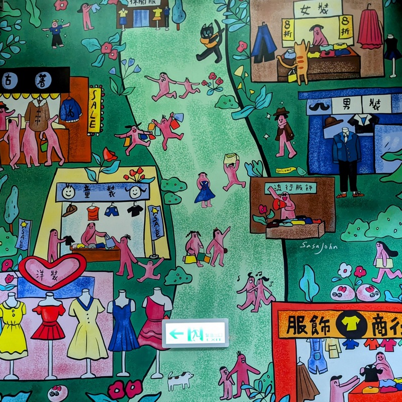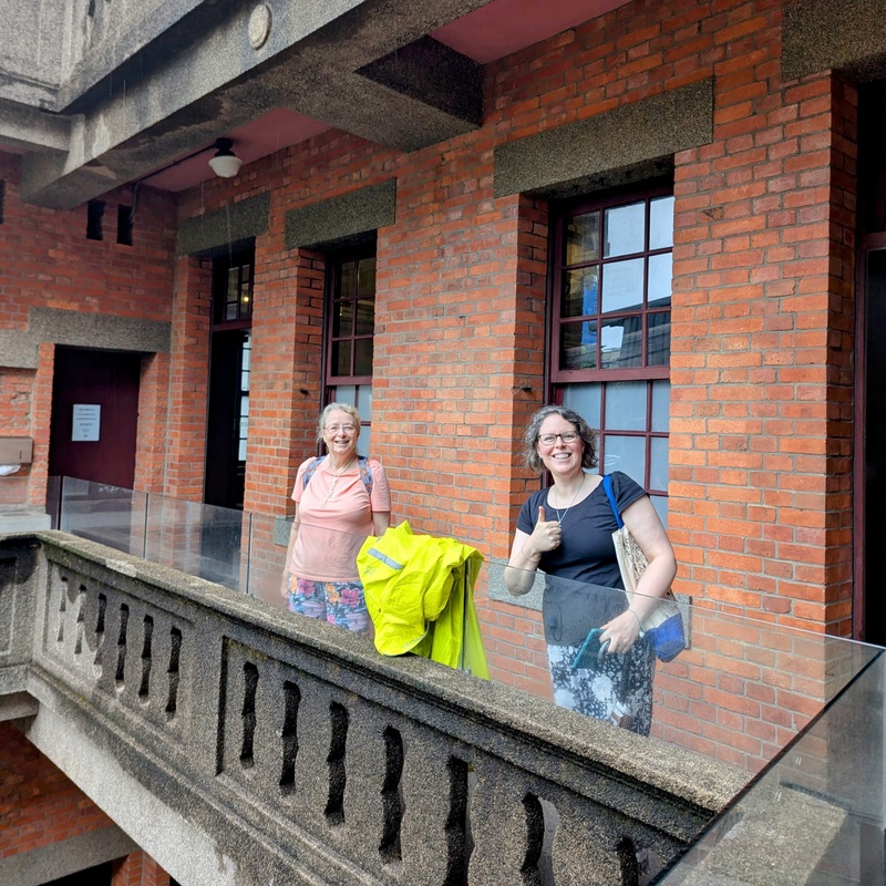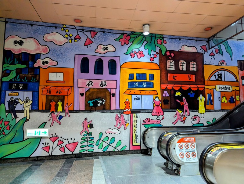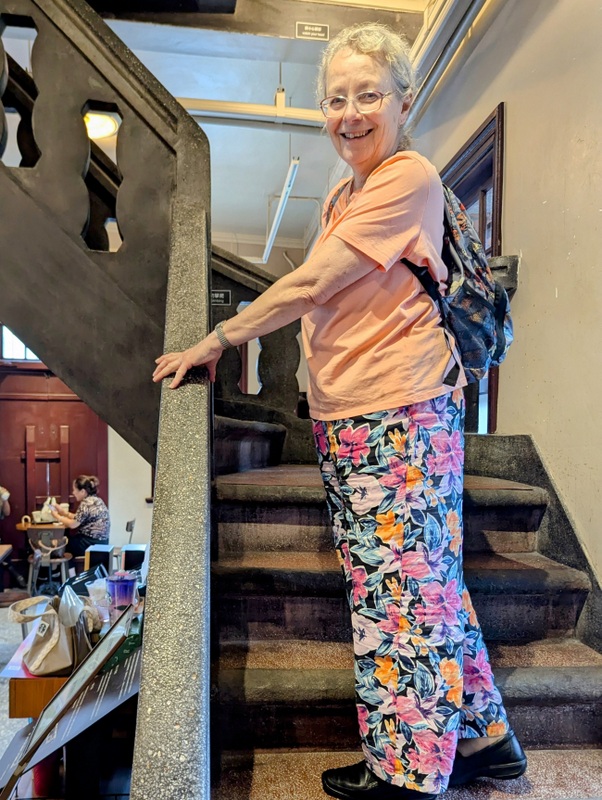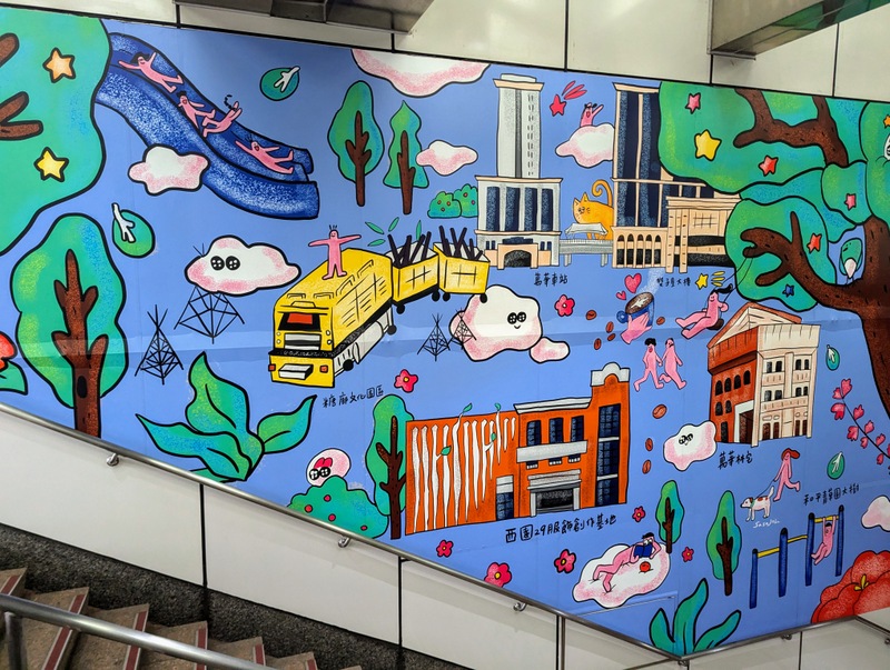 Then we took off for a little rainy sightseeing, walking through the Chiang Kai-Shek Memorial grounds, past the Presidential Office and as far as Taipei Train Station. We were heading for the Wanhua Mansion, dating from the Japanese Era, which is now a Starbucks coffee shop, recommended by Bishop Chang’s family, as most of Taipei was still closed. There are interesting murals on the walls of the MRT Station and the coffee shop was oozing with character – and people!