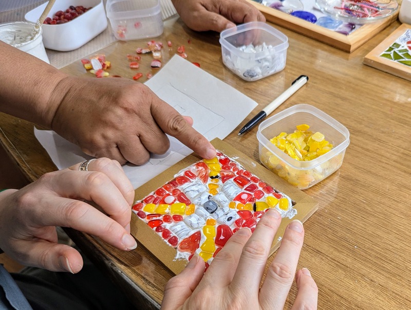 When she was on her placement, Shawn had taken Katherine to visit the Hsinchu Glass Museum, which she had really enjoyed – and which she now thought that the whole family would really enjoy too – and they could also do some real glass-blowing. So, off we went, and yes the Glass Museum is very special! It is housed in an old Japanese club and banquet hall, that later served as a military police station and the prison cell has been reconstructed out of glass. It’s not a big museum, but we were there for over 3 hours fully occupied with glass-blowing and mosaic-making. Oh yes and a bit of shopping! We also visited our Hsinchu church plant. Thank you Shawn for giving up your time to take us around. We had a great day, even in the heavy rain that fell in the afternoon!