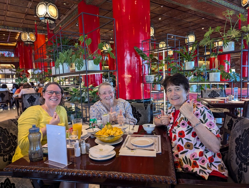 I see that the Sainsbury’s Bag wording says, ‘Good food for all of us.’ It’s quite amazing that with all the challenges of their visit, the Cooper family did, in fact, find ‘Good food for all of us’. Two of them have dietary needs that would put the rest of us off ever leaving our homes, yet here they came to Taiwan, a country that Google reveals as unsuitable for anyone who is seriously gluten-free. Gluten-free, vegetarian, allergies to onions, garlic and dairy are a fairly major deterrent to going anywhere, but the Cooper family proved to be intrepid, brave and undaunted by the challenges of finding something to eat! We did find a few places where everyone could eat together and enjoy something from the same restaurant, and the most widespread of those was MOS Burger, the Japanese burger company. They cater to all dietary needs, especially as they have rice buns as an alternative to bread, sauces with no onions or garlic, a range of vegetarian options and a menu in English. So MOS Burger to the rescue it was, and we had at least 4 or 5 main meals at their various branches. The right photo below is me, Catherine (with a ‘C’) and Katherine (with a ‘K’) meeting near the MOS Burger at Hsinchu High-Speed Rail Station ready for our trip to Tainan. It’s the closest we got to a photo IN a MOS Burger Store!