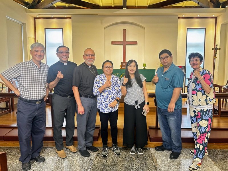 Bishop Taylor and his group from LA had actually arrived in Taiwan on Monday September 23 for a week of visiting churches and getting to know the diocese. We started with an informal lunch and birthday cake, meeting Mr. Gary Tseng and his wife, Amy, diocesan chancellor, plus clergy and diocesan staff. They met with Tim Pan and heard about TSCM, sharing together about theological training, and from there, off they went to St. John’s Cathedral for coffee with Dean Philip Lin, and onwards to visit many of our churches throughout Taipei, central and southern Taiwan. They met clergy and church members and saw all the different church ministries among kindergarten, youth and seniors, as well as church-planting, and even a little sightseeing in Keelung where Rev. Fennie Chang took them to meet her family. They came back delighted to have met so many people and learned so much!