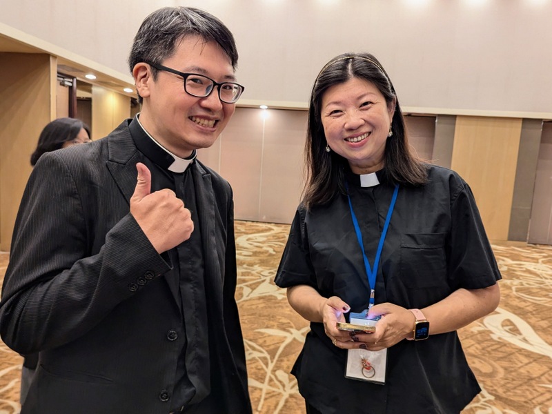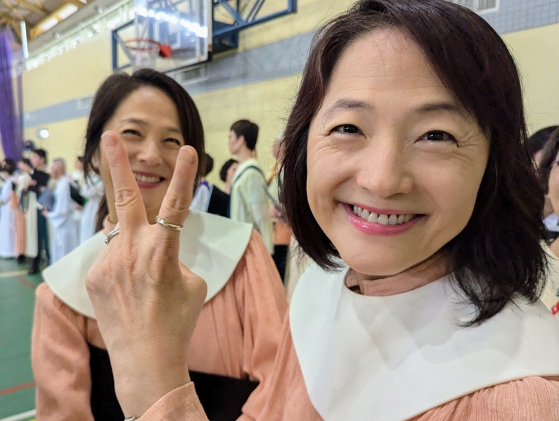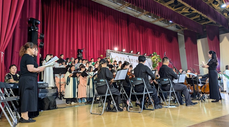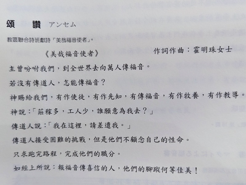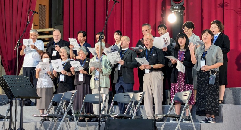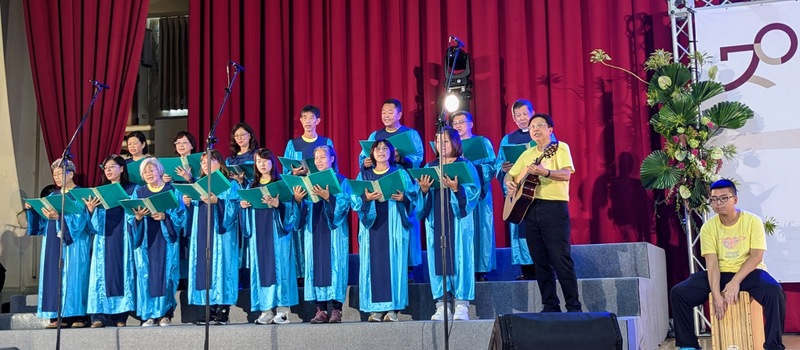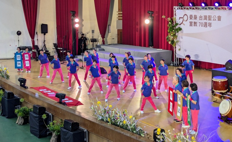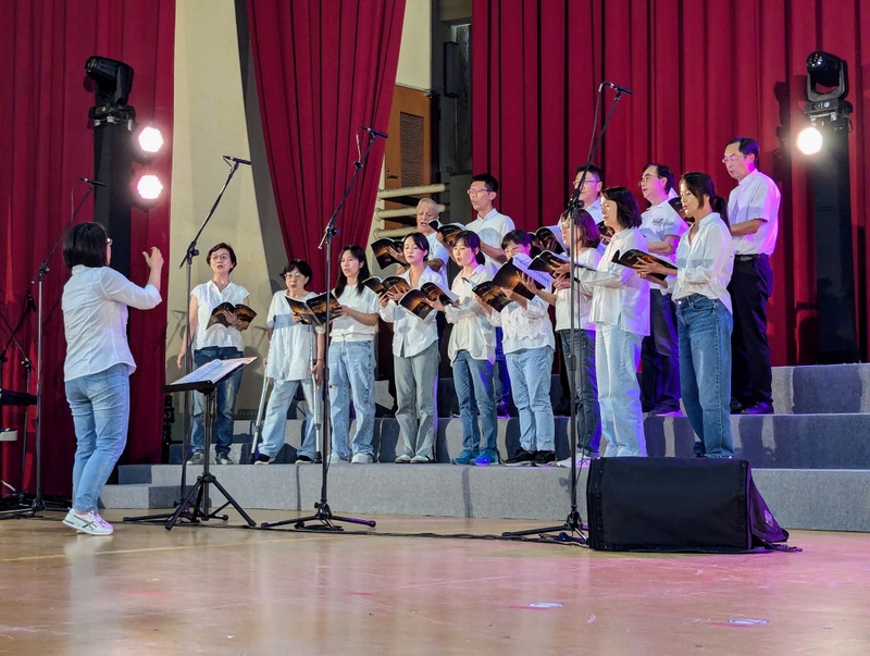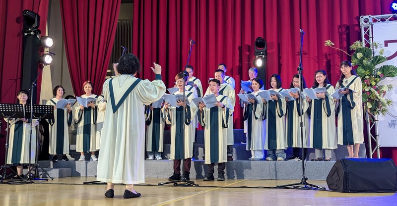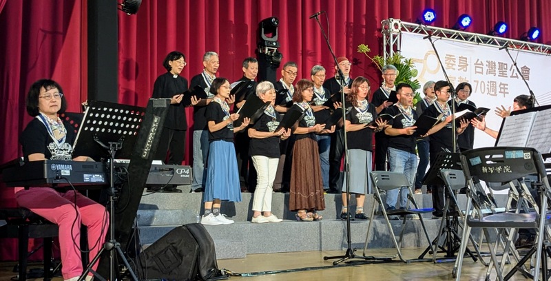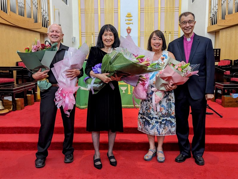 In 2011, Cynthia and her husband, Bill, by then at Davidson College, North Carolina, USA (and currently in the area badly affected by Hurricane Helene) wrote to Bishop Lai to enquire whether there would be a possibility to return to Taiwan to offer some concerts to the Taiwan Episcopal Church, the reply being a resounding ‘yes’! Since then, they have been several times, most recently last year in 2023 with Cynthia’s sister, Gloria, also a concert pianist, and it was on that trip that Cynthia kindly offered to write a 70th-anniversary anthem, so Bishop Chang sent her the Bible verse, Isaiah. 52:7, “How beautiful are the feet of those who bring good news, who proclaim peace”. The combined choir have been practicing for many months under the direction of choir director, Ms. Min-Hsi Fan and pianist, Ms. Pei-I Chan, and despite the challenges of the SJU Centennial Hall acoustics, many people, including Bishop Chang himself, commented on how beautiful the anthem was, with traditional Chinese-style music, and very moving words.