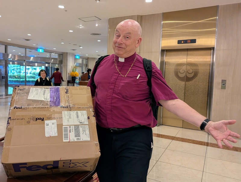 Later that same day, Bishop Taylor departed for New York. Thanks to him for so many photos, some of which I have used here. For his final farewell, he visited the diocesan office and said goodbye to all those who had helped with his visit – and especially retrieving his valuable FedEx package!