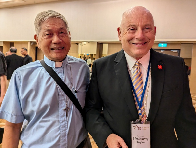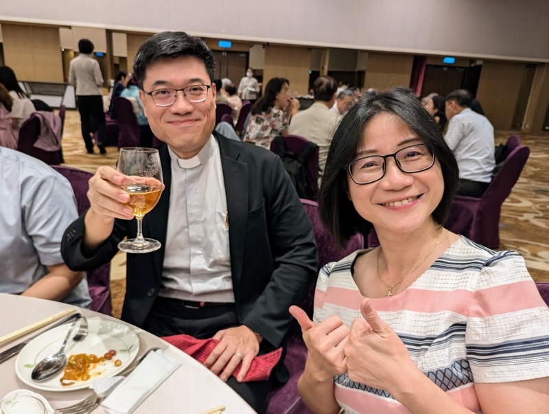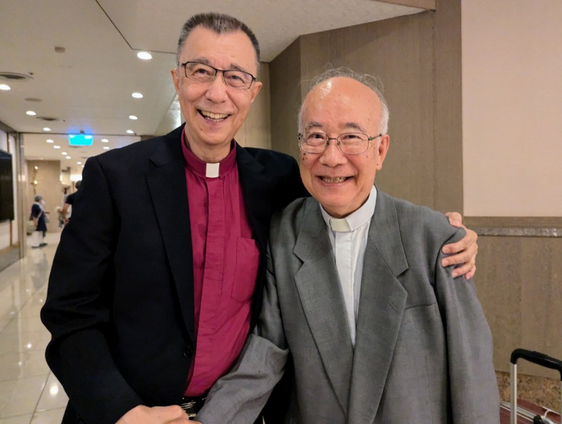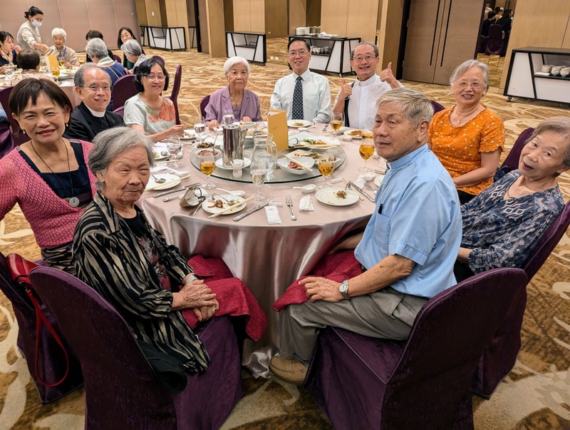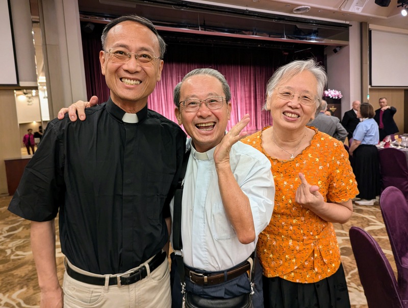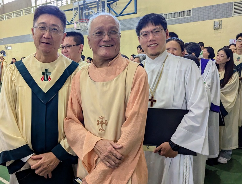 The Rt. Rev. Roger Jaomalaza Chung, retired Bishop of Antsiranana, Madagascar, and long-time friend of us all, was also here for the occasion, just arrived from his home in Mauritius. Bishop Roger’s wife, Alice is from Pingtung, Taiwan, but had moved to Mauritius as a child with her parents; her father had served there as a Hakka Presbyterian Minister. After her parents retired back to Taiwan, Bishop Roger and Alice would come to visit every year or so, and it was in 2011 that I first met them at the ordination service of Rev. Simon Tsou at St. Timothy’s Church, Kaohsiung – and which Simon reminded us of on Saturday (see photos below)! Bishop Roger had then just retired as bishop in Madagascar, having had a stroke, and moved back to Mauritius. About a year later, Alice’s parents moved north to Shuang-Lien Elderly Center, only a few minutes from St. John’s University, where I was then living, so I got to know them very well over the next 10 or more years. Alice’s father died about 5 years ago, and I carried on visiting Alice’s mother – we always had such fun together, they are such a lovely family. When Bishop Roger and Alice booked their flights to Taiwan this time, they intended to meet up with their family from Australia to visit Alice’s mother together. However, Alice’s mother sadly died on September 7, aged 95, so instead, they have come for her funeral and burial, taking place later this week. When they booked their flights to Taiwan to arrive on September 27, they also didn’t know then that it was to be the 70th-anniversary celebration of the Taiwan Episcopal Church the following day, and it was so good that Bishop Roger could come to the celebration. He mentioned that now that Alice’s mother has passed away, this will probably be his last visit to Taiwan, and if so, then it is a fitting occasion on which to say farewell after his long association with us and the Taiwan Episcopal Church.