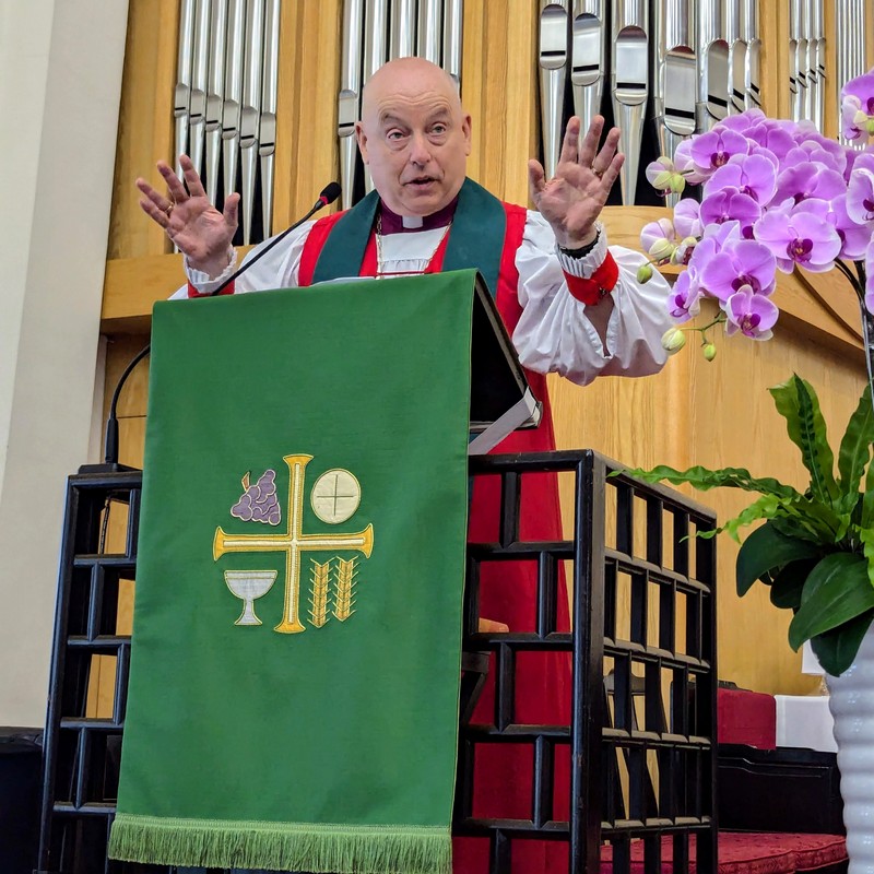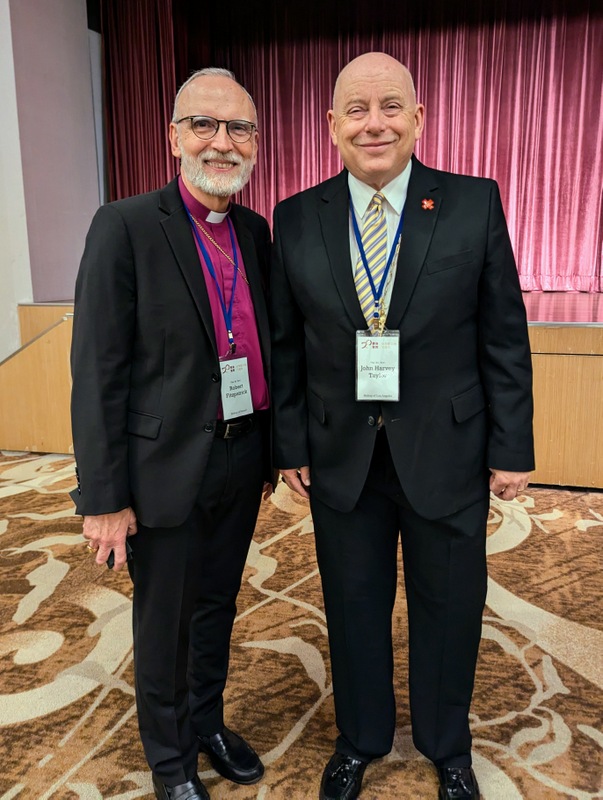The sermon at the Thanksgiving Service was given by the Rt. Rev. Robert Fitzpatrick, Bishop of Hawaii. He is also a long-time friend of Bishop David J. H. Lai (Bishop of Taiwan 2001-2020) and wise mentor to Bishop Lennon Chang, and was specially invited by Bishop Chang to come to Taiwan with his wife, Bea (see photos below) to preach at this celebration event. His sermon was translated by Dr. Tim Pan, Dean of the diocesan Trinity School for Christian Ministry (TSCM).