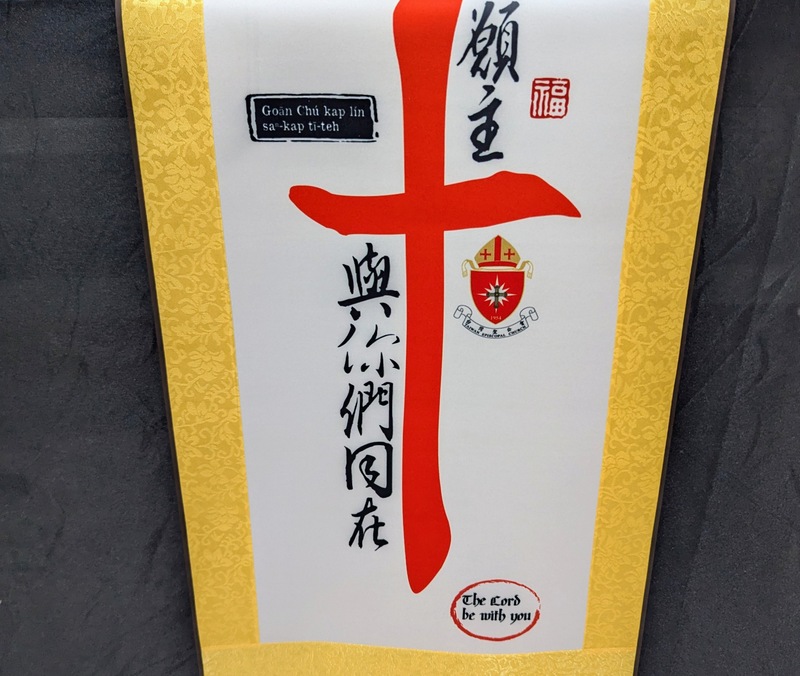 Bishop Taylor had sent a box in advance by FedEx containing all their gifts, but somehow it didn’t arrive in time, and it took several days for our diocesan staff to get it released from customs – so there was a lot of excitement when Bishop Taylor returned from south Taiwan to receive it from Lisa, via me, just in time for the 70th Anniversary Banquet and gift presentations!