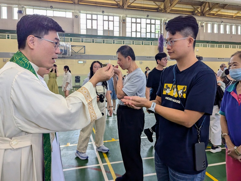 In the week leading up to the Thanksgiving Service, it was, however, a major concern for Bishop Chang and everyone at SJU that the roof of the SJU Centennial Hall could leak badly if heavy rains fell in the days beforehand. Bishop Chang strongly urged everyone to pray hard that there would be no rain on the day. After a succession of passing typhoons brought heavy rain in the previous 2 weeks, worry intensified when the weather forecast showed the development of another typhoon in the days leading up to the 70th-anniversary event, which led to extremely unstable weather across the whole country in the days beforehand. Fortunately, it was not serious enough for the government to cancel work and school classes, but as people woke early on Saturday, September 28 to travel to Tamsui and onwards to SJU, heavy rain was falling in many places, including in Taipei City and even on the road leading along the coast to St. John’s University. Amazingly (and even miraculously, according to some who were previously sceptical as to whether prayer would have any effect), no rain fell on the SJU campus all that day! It was dry and pleasant all day long, with occasional blue skies; thanks be to Almighty God.
