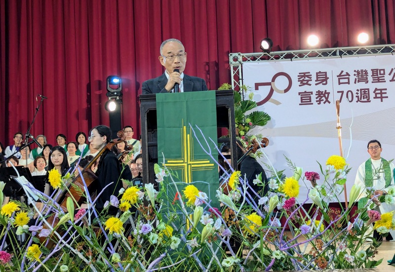 Two main themes ran through the Thanksgiving Service on September 28, firstly 七十、起始 Qīshí, qǐshǐ (‘Seventy, a New Beginning’) and secondly, 委身宣教 Wěishēn xuānjiào (‘Committed to Mission’). As Mr. Gary Tseng, Chair of the Diocesan Standing Committee movingly said in his short address (see photo below) at the end of the Thanksgiving Service, “The number 70, in the timeline of the Bible, represents a complete cycle; it signifies God’s leading of His chosen people out of captivity and into the Promised Land. Therefore, besides giving thanks for the past, we must also move out of difficulties and step into a new glory, driving the growth of the Taiwan Episcopal Church to establish sufficient parishes and fulfill the mission of forming a church province.”