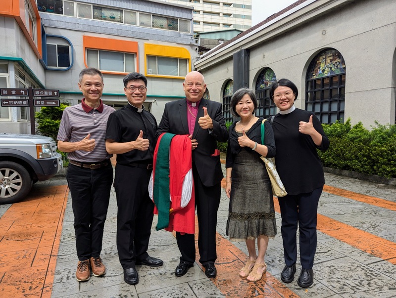 The Rt. Rev. John Harvey Taylor, Bishop of the Episcopal Diocese of Los Angeles, also participated in the Thanksgiving Service and Bishop Chang invited him to give the blessing at the end. In the last 2 years, through Bishop Taylor’s vision and encouraged by Bishop Chang, our two dioceses of Taiwan and LA have formed a new companion diocesan partnership with mission and learning together as a central focus. Bishop Taylor brought with him 3 very lovely Chinese-speaking clergy from his diocese in LA, Rev. Dr. Thomas Ni, Rev. Katherine Feng and Rev. Dr. Fennie Chang. Fennie is from Taiwan, originally from the Taiwan Presbyterian Church, whose hometown is Keelung, so it was a very special homecoming for her, and as all 3 of them are bilingual, so their visit was even more of a blessing to us all! Fennie and Katherine do much of the translation for Bishop Chang and Hannah when they attend Episcopal Church meetings in the USA, while Thomas is hoping for a closer relationship in theological training between our 2 dioceses. Although this was Bishop Taylor’s first ever visit to Taiwan, he fitted in right away, and everyone loved him, so outgoing, lively and friendly to everyone, with a fount of fascinating stories to share about his time as chief of staff to former U.S. President Richard Nixon. And as Bishop Taylor celebrates his 70th birthday this year, so he’s the same age as the Taiwan Episcopal Church!