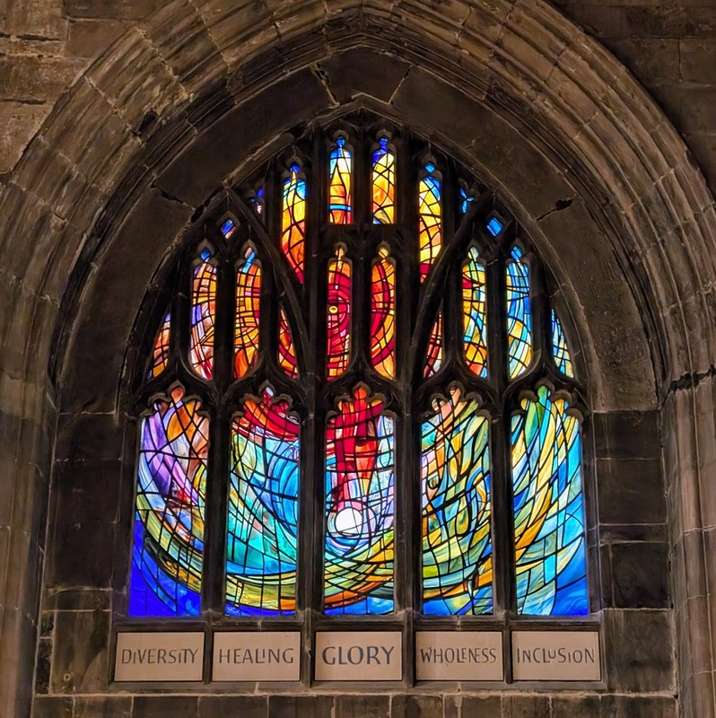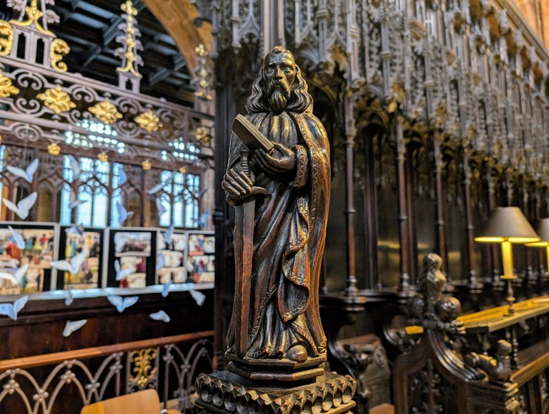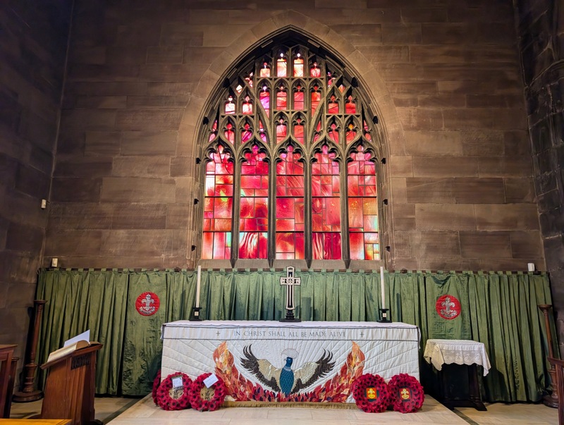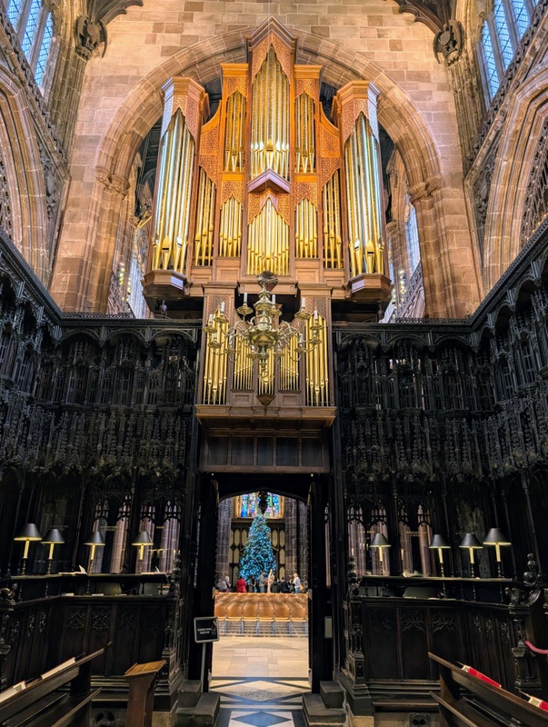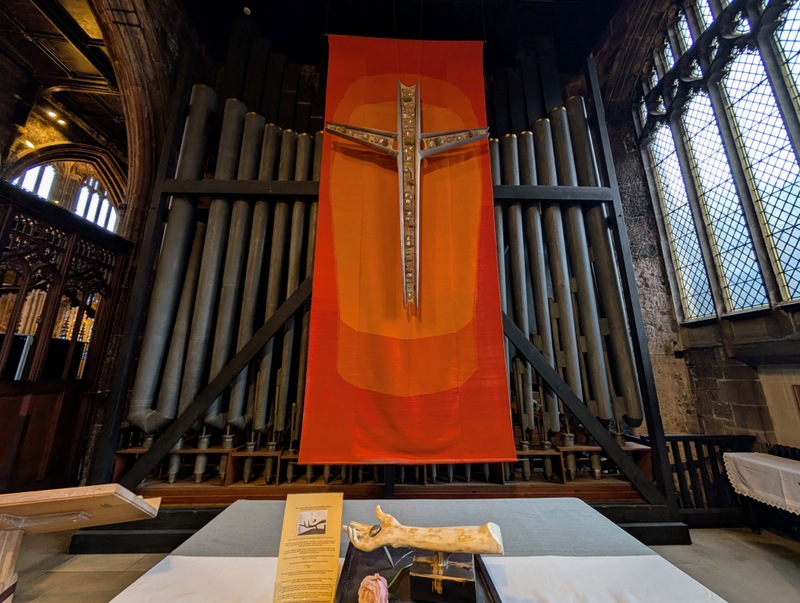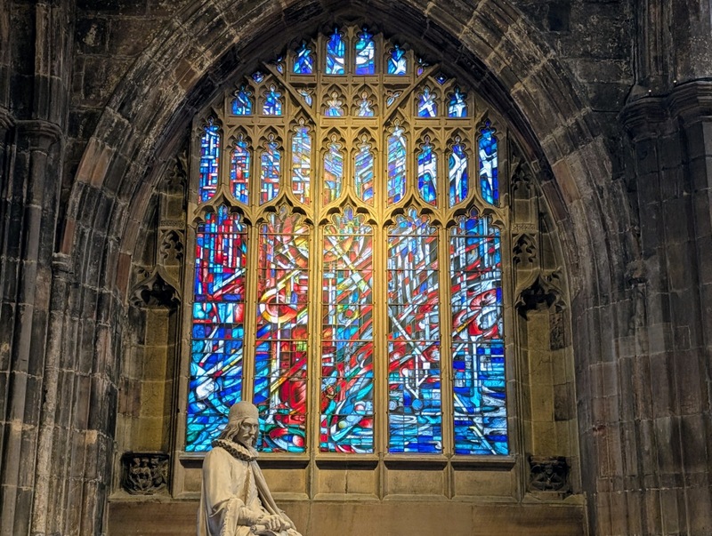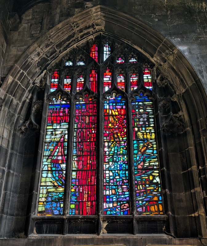 And on one other sunny day, we went to Manchester by train, and after meeting up with our very lovely family, we enjoyed a visit to Manchester Cathedral. As a child, we lived in Manchester for about 5 years, but I’ve hardly been back, and certainly not to the cathedral, so I was keen to go! The stained glass is stunning and is a much later addition to the building, the original having been destroyed in the Manchester Blitz in World War II; there’s also some newer glass installed after the IRA blast in 1996…