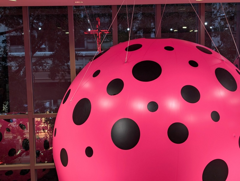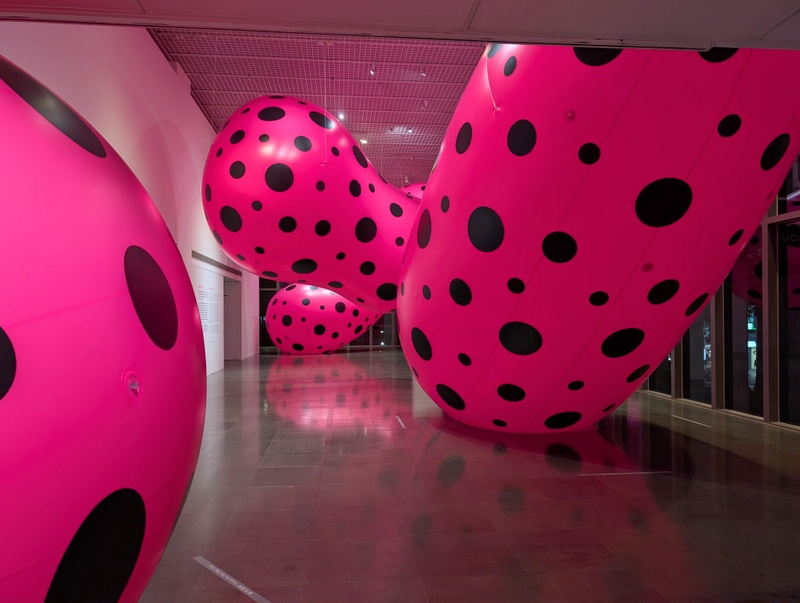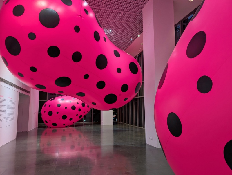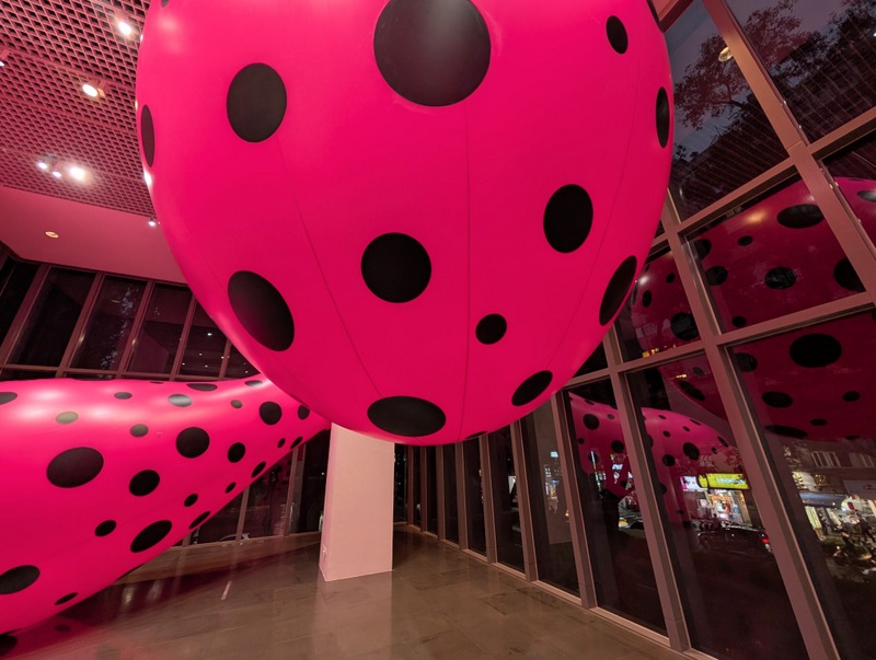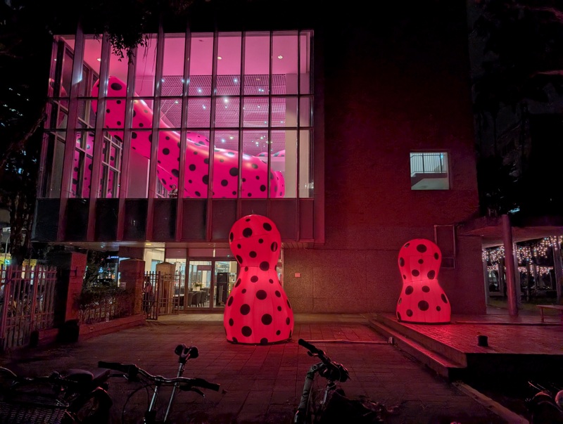The above photo is the night view from just across the road at St. John’s Cathedral, Taipei. It’s the National Taipei University of Education Museum’s exhibition by Yayoi Kusama, famous for her polka dots! It’s good to go late afternoon, when it’s getting dark, the colours are stunning!