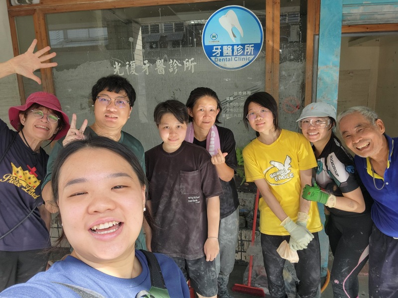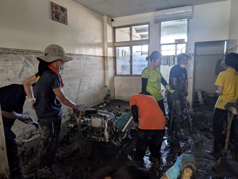It was this verse from 1 Cor. 12:26: “If one member suffers, all suffer together; if one member is honored, all rejoice together,” that inspired our group from the Taiwan Episcopal Church to go to Guangfu to volunteer. Of the six of us who traveled there from Taipei on the Saturday night, all of the others were in their early twenties, mostly students, including Rev. Joseph Wu’s 2 children, Paul Yong-En, our team leader, and Teresa Yong-Ai. We also had Paloma and Timothy, and Timothy’s classmate. Then we had Rev. Joseph Ho and his family, who came on Sunday evening; they fondly recall the care and love they were shown by Dr. and Mrs. Kuo while Joseph was assigned as vicar of St. Luke’s Church a few years ago. Just in August, they had taken their children to Dr. Kuo’s dental clinic for examination. This time, Joseph came with us to help at Guangfu, while his wife, Angel and the children went to help with sorting relief goods to be sent to Guangfu. We also heard that Amy Chin, our Diocesan Chancellor and her husband, Gary Tseng were in Hualien helping to deliver goods to the frontline. We are grateful to Amy for instigating this project for us all to go to Hualien. We also had a team from St. Stephen’s Church, Keelung, Huang Min and Sunny who drove down for the day from Keelung, and a large devoted team from St. Luke’s Church, Hualien, plus Rev. Vivian Kuo, who came every day. Vicky, from our diocesan office came for a few days, overlapping with the visit of Bishop Lennon Chang and his wife, Hannah who visited the clinic on Wednesday, along with Mr. Yang from St. Luke’s Church, to encourage and pray with Dr. Kuo and wife, who had just returned from Macau (see the photo below). Everyone played a part, big or small, whether in digging out the mud, cleaning, sorting and delivering goods, in funding our train tickets and stay in Hualien, or in prayer and encouragement. Thanks to everyone who helped in any way, it was a great team effort and much appreciated. This weekend is another long weekend in Taiwan, this time for the Mid-Autumn Moon Festival, a time of family reunions and barbecues. Many volunteers have also gone to Guangfu, though in Dunhou Road, most of the debris has been cleared, and heavy work now involves cleaning the drains and helping further afield.