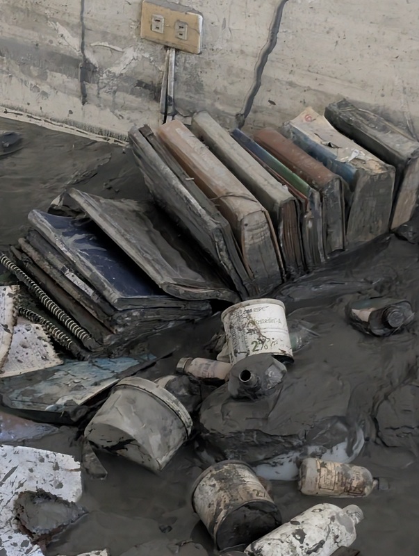 That day was spent digging out the mud from the back room and toilet. It was all disgusting. When we had finished, we still could not open the back door. Outside the back door was a field of mud, with cars immersed up to their roofs. Somewhere out there, though parked closer to the road, had been Dr. Kuo’s car too. Like most of his neighbours, his car is gone.