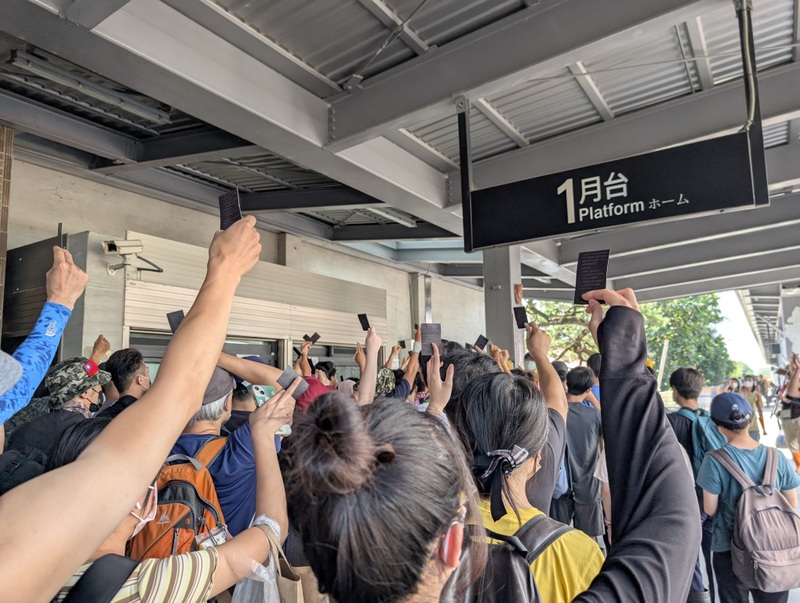 Leaving the clinic to go back to Guangfu Station took us past people at the side of the road offering to hose down our boots, others were handing out bread, drinks, and even T-shirts. The huge crowds at the station were calm, good-natured, and patient; there were so many people that by the second day, the station staff asked us just to hold up our tickets so he could see them as proof that we had one.