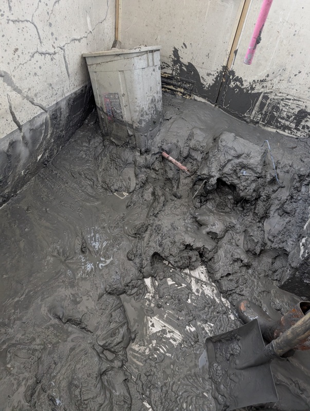 When we arrived on Sunday, to help, much of the water had drained away, leaving a layer of thick sludge all over everything in the clinic, including all the equipment, the x-ray machine, the dental chair, the computer, the washing machine, plus all the files and records. Everything had to go. We also had to take out all the interior wooden walls and doors, leaving a totally bare, empty room. That first day was the hardest; it was all digging out mud, smelly, horrible mud. We were all disgustingly dirty and hot (it was 30°C all day), but we managed to clear most of the mud from the main room and the X-ray room. Relief and exhaustion all round.