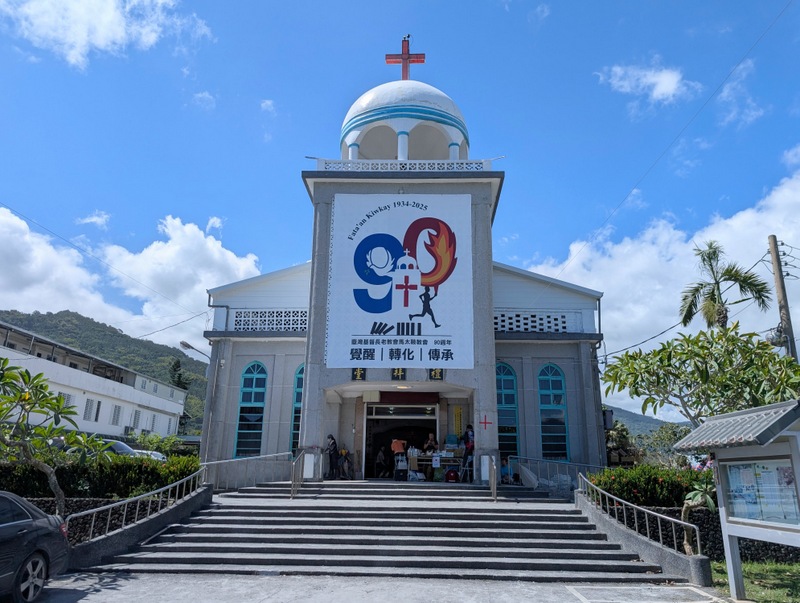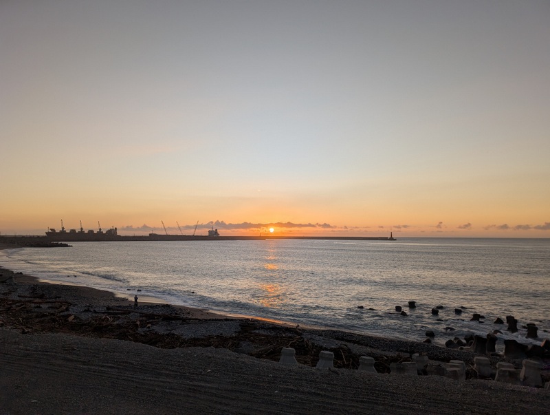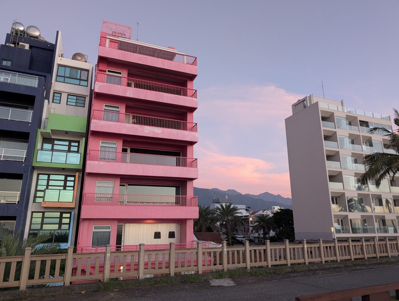 In Hualien, we stayed at a guest house run by one of St. Luke’s Church members. Its location reminds us that Hualien is a city on the edge. Everywhere you walk in the city are views of the high mountains. But our guest house view was of car parks. Whenever I see a car park in a place like Hualien, I always wonder what was there before. Local people said that one of the car parks had been the site of a hotel that collapsed in an earthquake some years ago. Another nearby building is a boarded-up hotel, awaiting demolition; it was damaged in last year’s earthquake, April 3, 2024, one that we felt, even in Taipei. But it’s not all doom and gloom. Sunrise over the Pacific Ocean was beautiful.