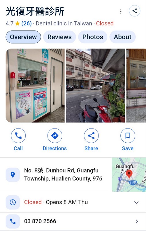 Dr. Kuo 郭導天 and his wife, Ms. Hsu 徐克洋, are members of St. Luke’s Episcopal Church, Hualien, and for the last 42 years, they have been faithfully running Guangfu Dental Clinic. St. Luke’s Church, Hualien is the only Anglican / Episcopal Church on Taiwan’s east coast, and every Sunday for the last 42 years, Dr. Kuo and his wife have traveled the 50 km (30 miles) from Guangfu north to Hualien to join the morning service at St. Luke’s Church; and they regularly join in other church activities, like Bible Studies and helping to serve at the summer camp. This photo below was taken in August 2025, when Rev. Joseph Wu was installed as the vicar of St. Luke’s Church (for the second time, hence he’s already very familiar with everyone); you can see Dr. Kuo and his wife smiling and standing on the far left (second and third left) on the front row.
