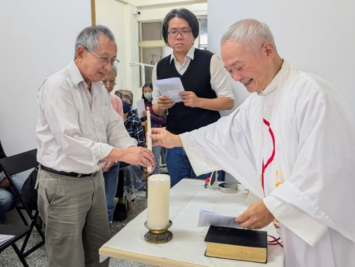Rev. Joseph Wu led prayers of blessing in different areas of the clinic, at the main entrance, the registration, and in the treatment area, while Dr. Kuo held the lighted candle; there were also special prayers for Dr. Kuo and his wife themselves. The prayers included these words (translated), “May the Holy Spirit fill this place. May God guide Dr. Kuo and his wife to serve their patients with love, faith, and skill, so that this clinic may once again become a source of blessing to the community and a testimony of His grace.” During the service, we also had Holy Communion. After the service, we all received a box of cakes and bread for our lunch. Dr. Kuo’s wife, Ms. Hsu, shared how when she had gone to order the cake boxes, the lady had asked her if she was buying cakes to mark the closing down of her business, and Ms. Hsu was delighted to tell her, no, they were, in fact, reopening. Their enthusiasm to reopen has become infectious. Across the road, the doctor’s surgery is reopening soon, and next door, the pharmacist told us that with the doctor and dentist reopening, and people coming to these clinics needing medicine, how could he not reopen?