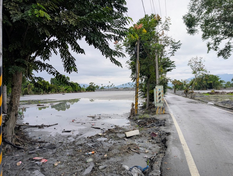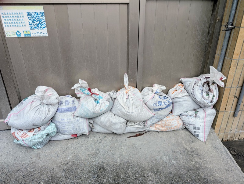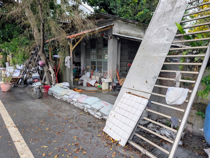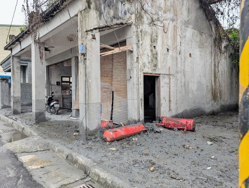 Back in July, a landslide up in the mountains above Guangfu led to the formation of a barrier lake high up in the Matai’an river. Over 80 barrier lakes have been recorded in Taiwan since 1979, although most are temporary and disappear within a year. They are formed by landslides that block rivers, with significant events often triggered by earthquakes or typhoons. Hydraulic engineer experts assessed this one as too remote to try to intervene to prevent its overflow; instead, it was constantly monitored for overflow risk. Torrential rains from Typhoon Ragasa in September led to warnings and some evacuations, but they were clearly not taken seriously enough – the disaster response is now under great scrutiny. The barrier lake burst its banks on September 23 and tragically overflowed into the town of Guangfu and surrounding villages, many of them belonging to indigenous people of the Amis Tribe. Those nearest the river fared the worst, especially the elderly who were trapped in single-storey buildings, unable to escape. Nineteen people lost their lives, and six are still missing. Relatively unaffected were buildings at the top of the town, including the railway station, Fata’an Presbyterian Church, and the old sugar refinery. In buildings like Dr. Kuo’s dental clinic, situated about halfway between the railway station and the river, the water reached about 170 cm; that’s above head height. Like most of their neighbours, Dr. Kuo and his wife managed to escape because they live on the upper 2 floors above their clinic. These photos below were taken a day or two after the disaster…