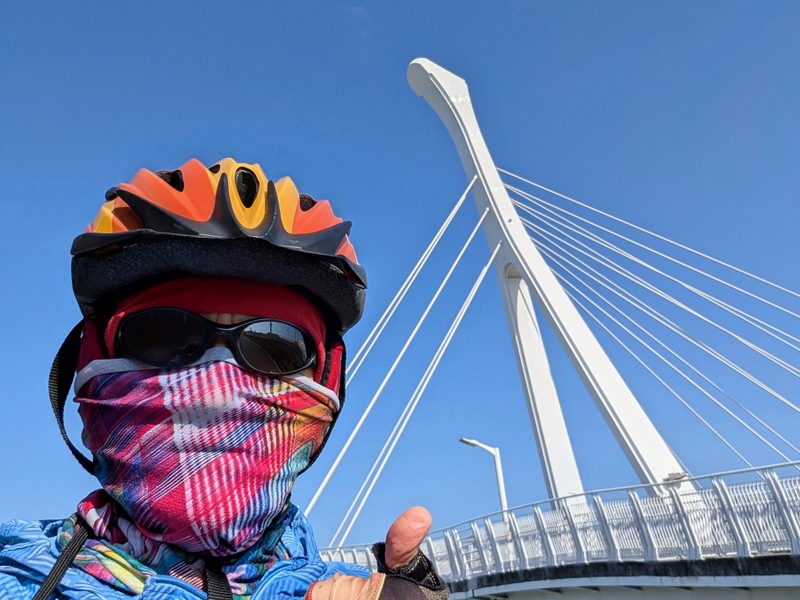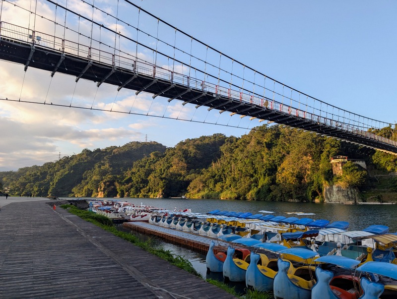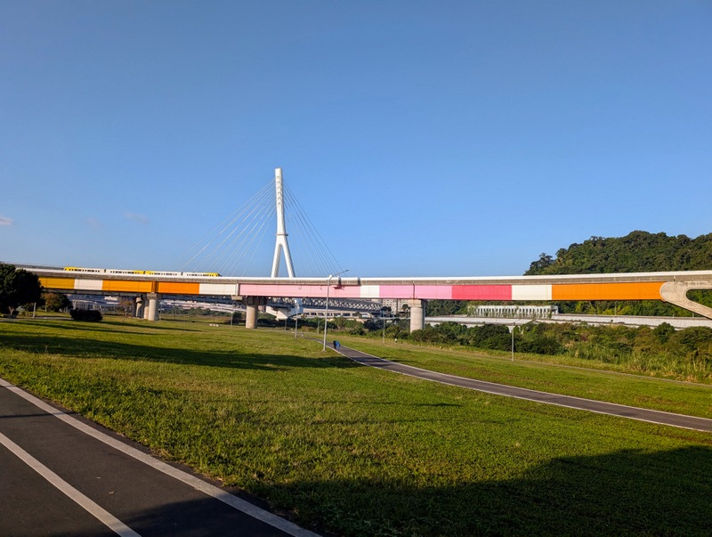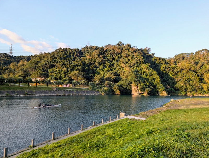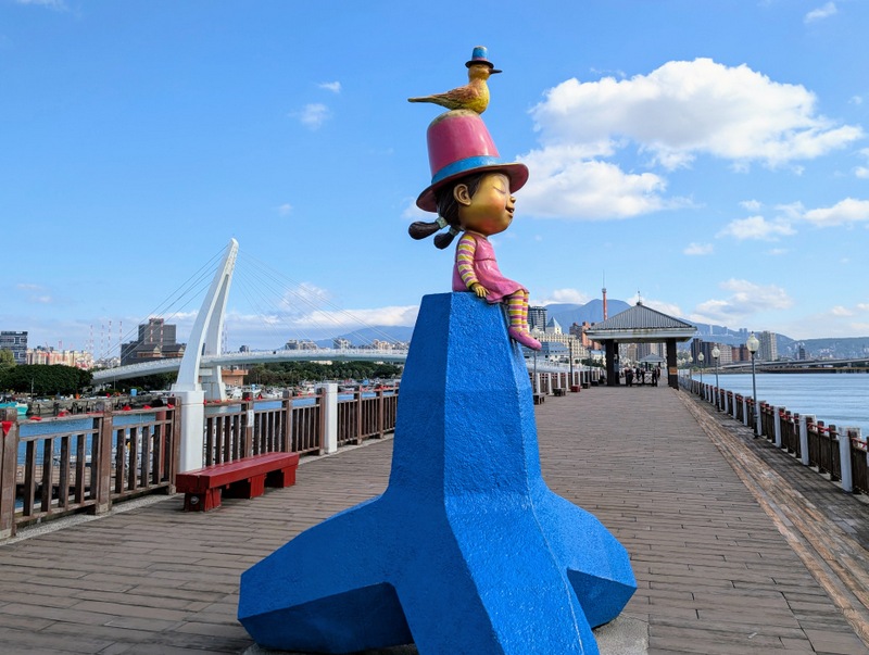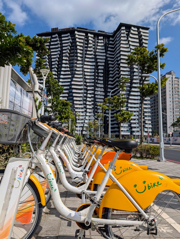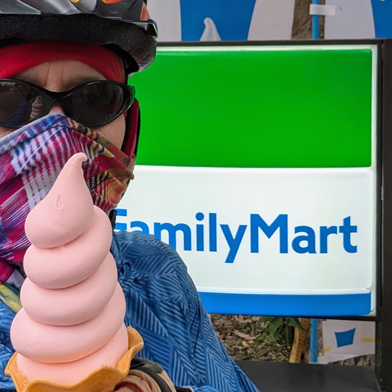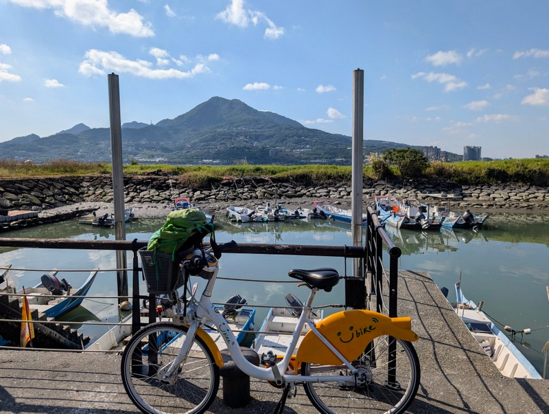 This was not just any old cycle ride. π΄ It’s not every day, after all, that I meet a dinosaur riding around Taipei City on a yellow U-Bike. This was Saturday, January 10, with a cold 10Β°C to start the day, and dark until about 6:20 am. At 5:20 am, off I set, to try and get all the way from the start to the end of the great river (Tamsui River and its upper branches, Jingmei and Xindian Rivers) that runs all the way through Taipei – and back. This means riding from Gongguan 50 minutes upriver to Muzha, at the end of the MRT Brown Line, also the location of Taipei Zoo and the big giraffe-painted incinerator chimney. By then, dawn was breaking, with lots of people out and about, exercising, running, cycling, roller-skating, dancing and walking. After dawn at Muzha, back along the bike path and to Bitan for sunrise, famous for its scenery, paddle boats and weir. From there, off northwards to Shezidao by mid-morning, then to Guandu and so to Tamsui Fisherman’s Wharf at the rivermouth by noon – and back home by 4:00 pm, in time for ice-cream. Family Mart has a new flavour each month, and this month it’s strawberry, so yummy.