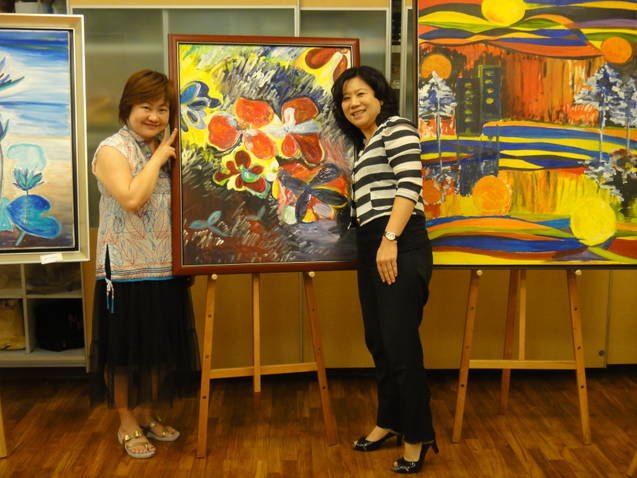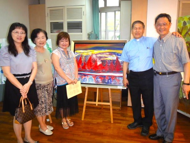 Rev. Charles C. T. Chen could not rest however! At the back of his mind was still the feeling that he had let down the people of St. Gregory’s Church. Understandably they were disappointed and sad at the decision to use the remaining money to build two smaller churches instead. They were still left with that rundown church building being leased from the community. After much prayer, Rev. Charles C. T. Chen started to discuss with the people of St. James’ Church about the possibility of both buying a completely new plot of land and building a new church for the people of St. Gregory’s. One of the church members at St. James offered to fund the purchase of a new plot of land. Another church member, Ms. Hui-Lan Hsu, an old friend of St. James, was an artist who offered to hold an exhibition of her paintings (see photos below) and to donate the money to build the new church. In 2003, her husband Mr. Yang Song-Hui, had been killed trying to escape a fire at the top of a high-rise building, he had held back to let everyone go first, and as the last one, he fell to his death. He was only in his 30’s, and he left his wife and two young sons. The Chinese characters for his name, Song-Hui, are those used in the English name, ‘Gregory’, and his wife, Hui-Lan was keen to raise the money in memory of her beloved husband. What more beautiful memorial than a church bearing her husband’s name and built with money raised by selling her own paintings?