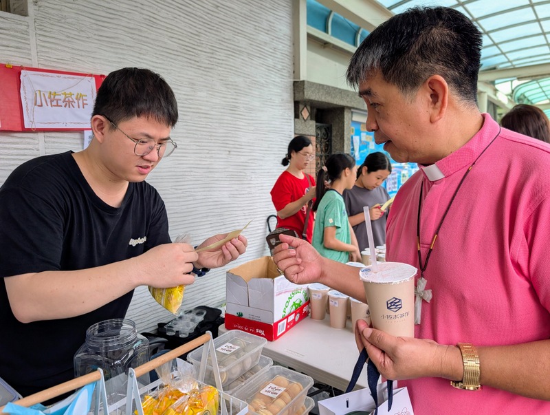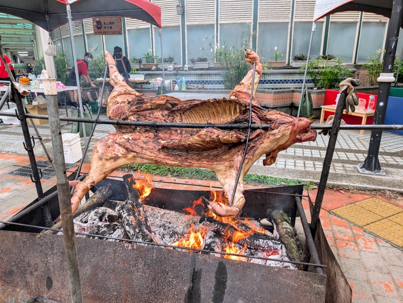 The wild boar was ready ~ and it smelled wonderful! It was roasting on a spit outside St. James’ Church, Taichung, all ready for our visitors from the Episcopal Diocese of Central Philippines (EDCP) as they arrived on Saturday, April 25, 2026. As soon as they’d been welcomed and had a short tour, we all sang Happy Birthday to Bishop James Boliget – what a birthday for him to remember! Many of the men then headed out to try the delicious wild boar meat cooked by the Bunun Tribe, from Nantou, central Taiwan, while the women gathered around the stall selling massage oils and handmade soap. The occasion was the St. James’ Kindergarten annual charity bazaar, and we were all so happy when the EDCP visitors expressed their willingness to visit the bazaar before heading off on a day of sightseeing at Sun Moon Lake!