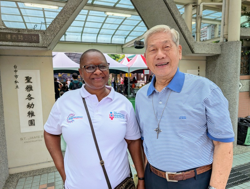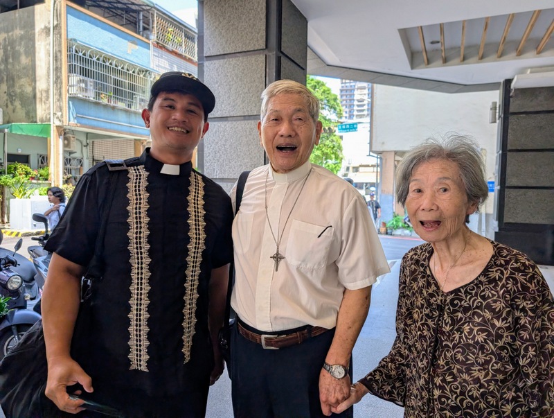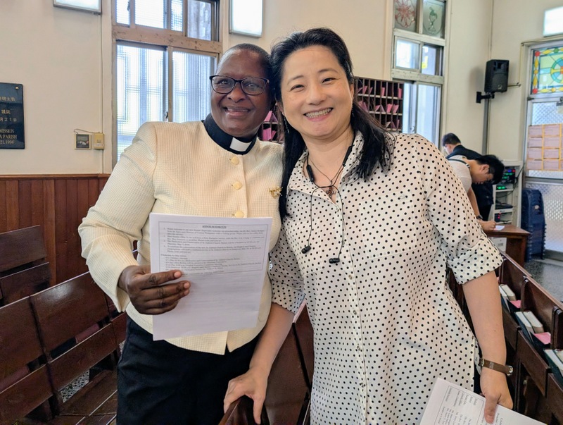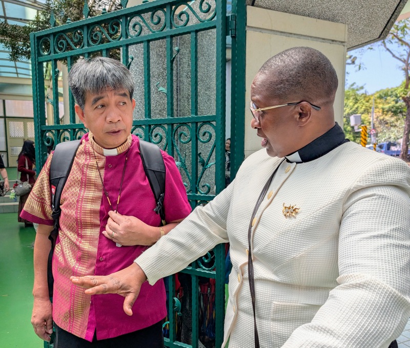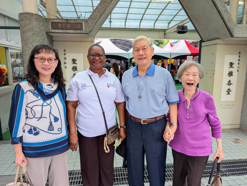 Only a month ago, in mid-March 2026, Bishop James Boliget of EDCP got in touch to say that he was leading a group of 22 clergy and their families from his diocese on a pilgrimage tour of Taiwan, and they would like to worship at ‘St. James’ Cathedral’ on Sunday, April 26. I asked him to clarify whether he meant St. John’s Cathedral, Taipei or St. James’ Church, Taichung, and of course, he meant St. James, with the opportunity to meet the Rector Emeritus, Rev. Charles C. T. Chen. What excitement there was at St. James when everyone heard this news! Rev. Lily Chang, rector, and Ms. Luanne Chiu, kindergarten supervisor and Charles’ daughter-in-law, organized an amazing weekend, with the full support of all clergy, church members, kindergarten teachers and the whole community. The Bishop of Taiwan, Bishop Lennon Yuan-Rung Chang was invited to attend, but he had already arranged to be at St. Mark’s Church, Pingtung for their St. Mark’s Day celebrations, instead he kindly sent each of the EDCP visitors an artillery shell cross as a gift. Thanks to Charles and everyone at St. James, I was invited to join the weekend’s events, and I also took with me the Rev. Dr. Judith Odhiambo, from the Diocese of Eldoret, Kenya, who is visiting Taipei for six months research; this was her first visit to St. James’ Church. The dean of St. John’s Cathedral, Taipei, Dean Philip Lin, as former rector of St. James, was also there with his family on Saturday. And of course, Rev. Charles Chen and MaryJo, now both aged 90, were fully present throughout the whole weekend, full of excitement!