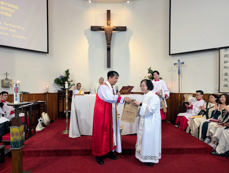 There were also gift presentations, and Rev. Charles Chen gave a very lively and moving speech, translated by Professor Annie Tsai, and he also presented Bishop James with a donation towards EDCP seminarians’ training.